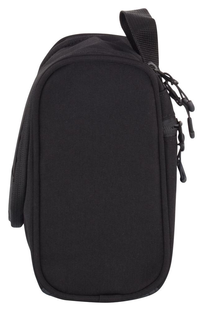 En moderne toalettveske med flere muligheter til organisering. Stor glidelåslomme bak for enkel tilgang. Krok til å feste toalettmappen når den er åpen.