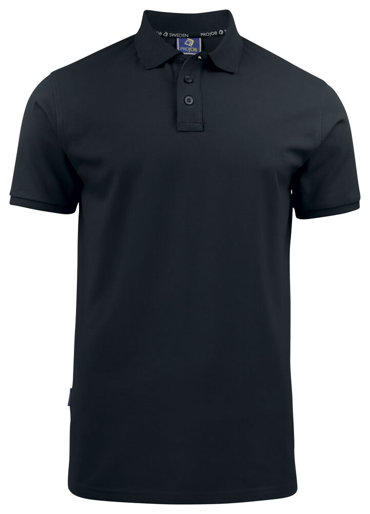 Moderne piké i stretch med tight passform. Tre knapper, ton-i-to i stolpe. Nakkebånd og dekorative sømmer i sidesplitt. Forkrympet og enzymbehandlet for en myk og behagelig følelese.