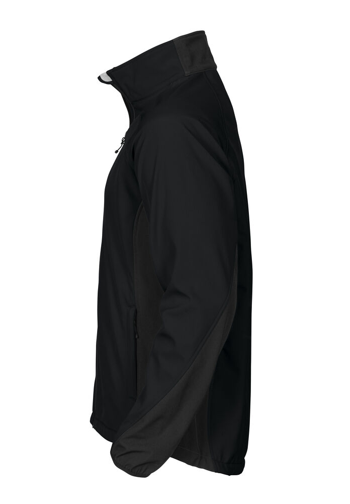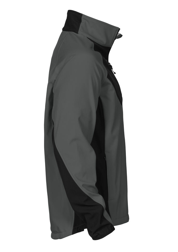 Softshelljakke med god ventilasjon. To lommer på sidene med glidelås. Påsydd brystlomme med glidelås. To innerlommer. Innvendig vindklaff med beskyttelse til haken. Justerbar midje.