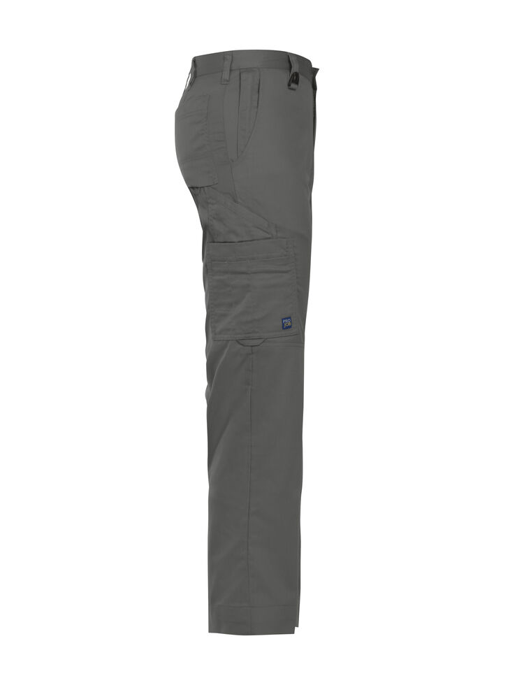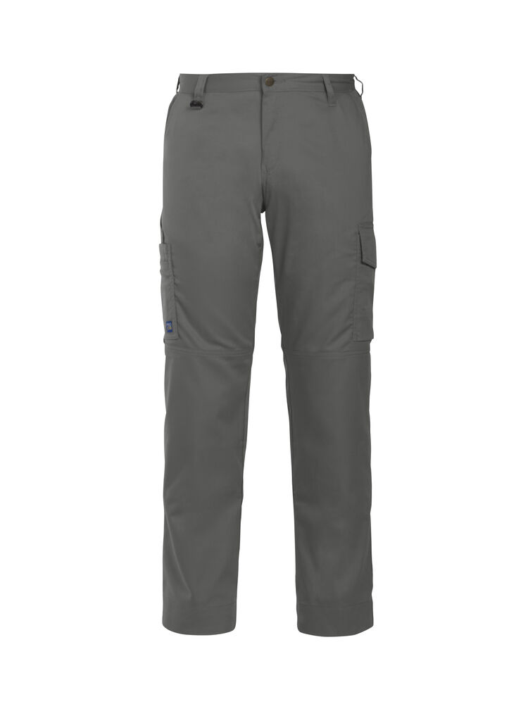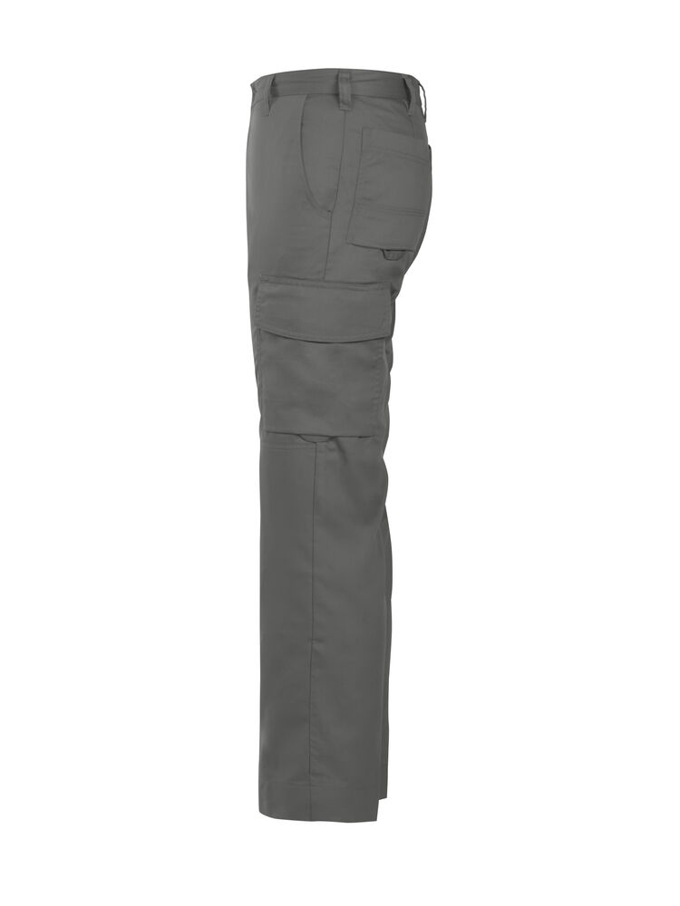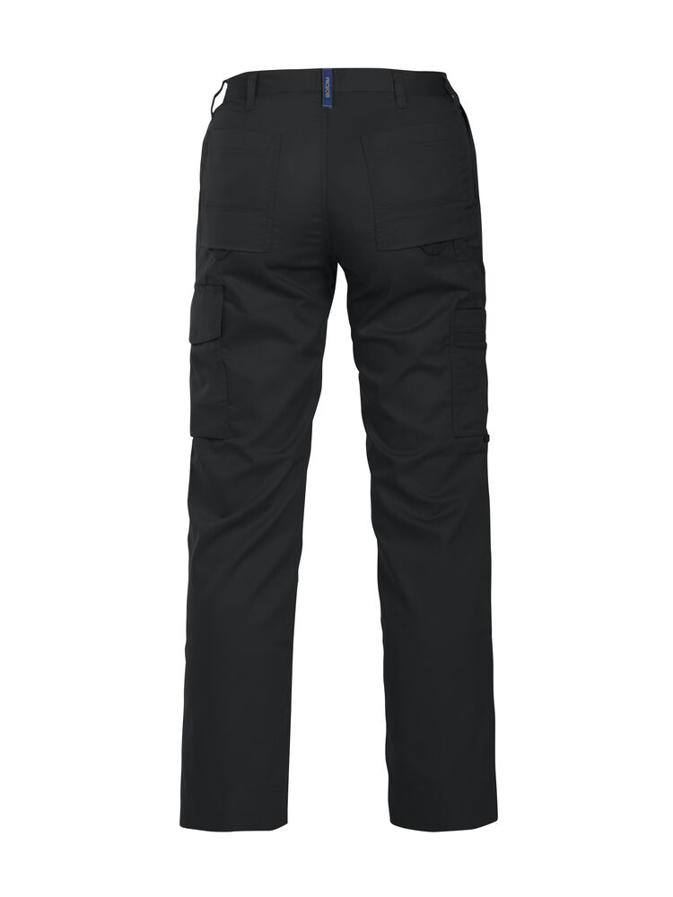 Klassisk servicebukse med sidelommer i front og sikkerhetslomme med glidelås på høyre side. To utenpåliggende baklommer og to benlommer. Venstre benlomme har klaff og innvendig mobillomme. Høyre Benlomme har plass til mobiltelefon, penner, papir og tommestokk. D-ring i front. Knebeskyttelseslommer på innsiden. Hemper under baklommene og benlommer for feste Inbags i.