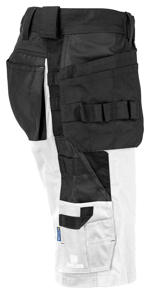 Shorts med stretchmateriale bak over hele setepartiet og i skrittet. To benlommer med glidelås. To baklommer med med klaff. Feste for hengelommer.
