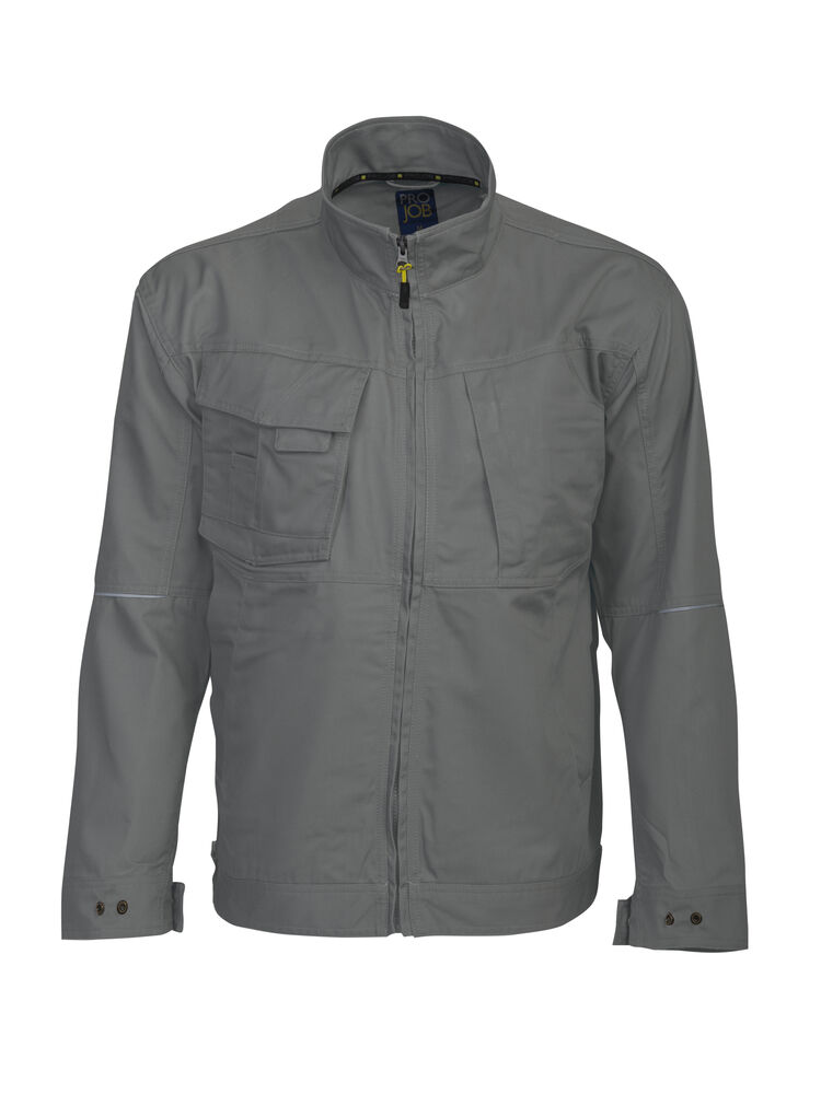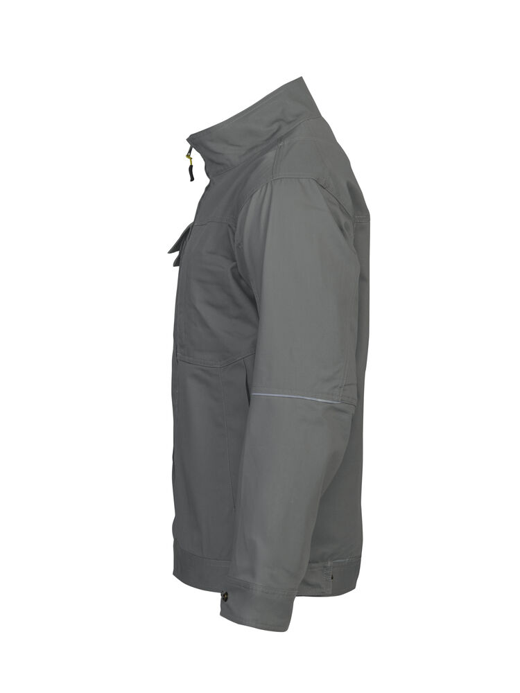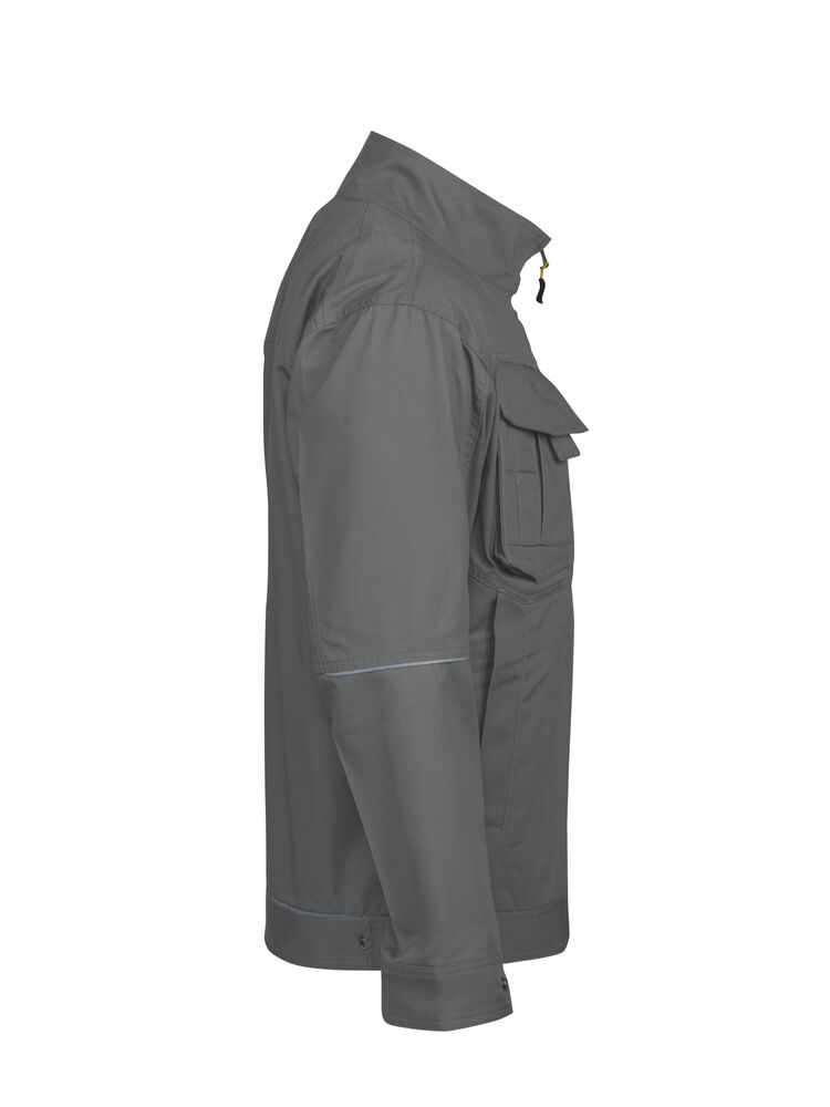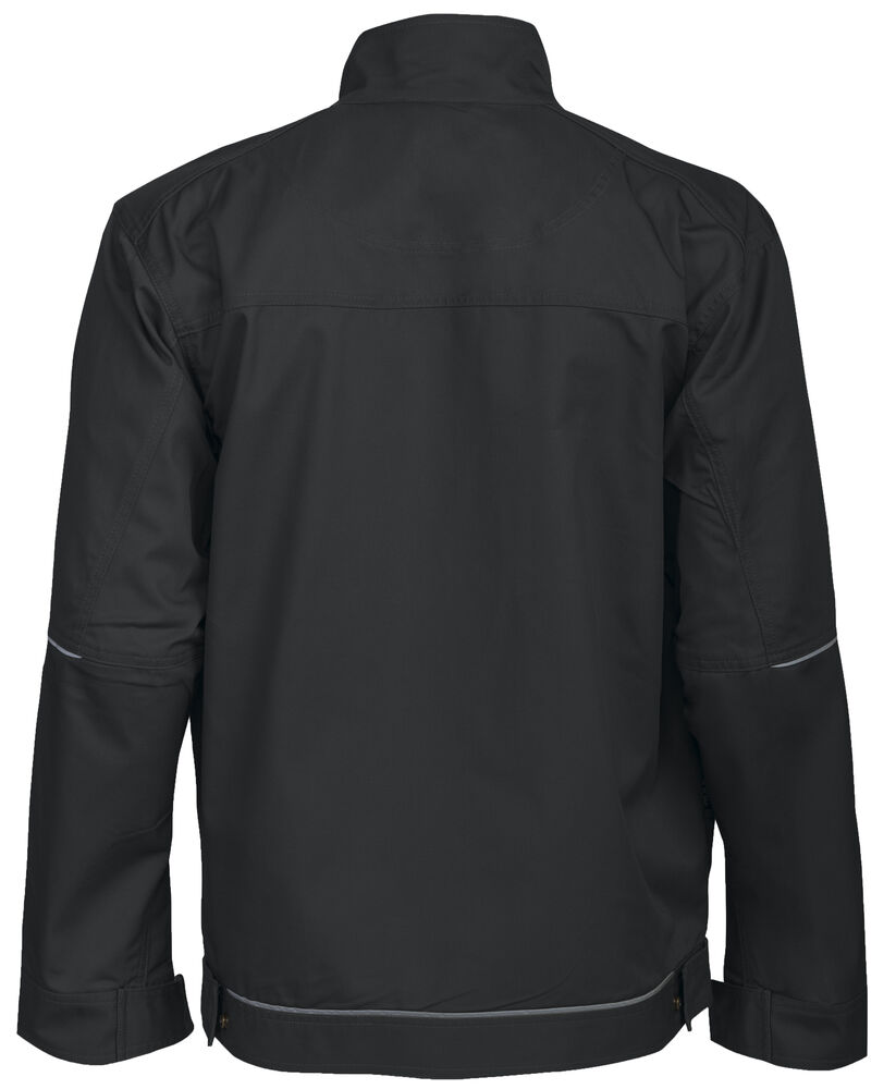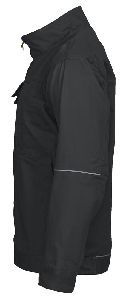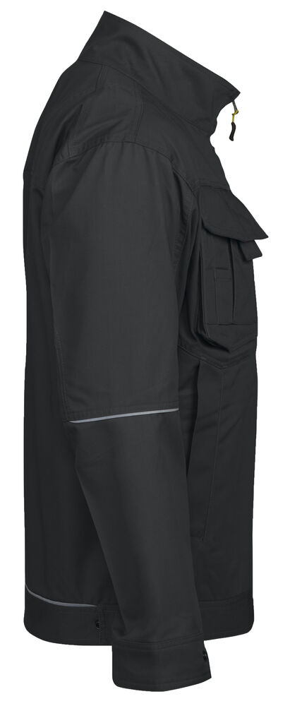 To brystlommer hvorav høyre lomme har plass til telefon, penn og feste for ID-kort. Den venstre lommen har glidelås. Glidelås opp til kragen. Innsydde framlommer. Regulerbbar midje og armavsluttning. Forlenget rygg. Innerlommer med dokumentlomme.