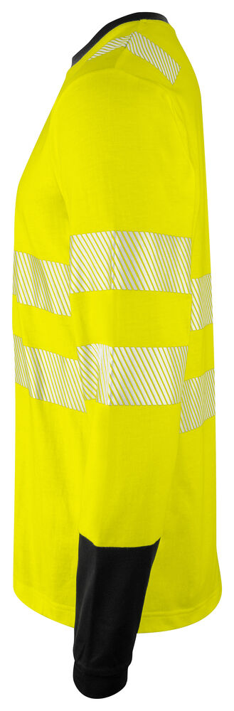 Langermet t-skjorte i polyester/bomull som gir en herlig følelse av bomull mot kroppen. Svart kontrastfarge ved mansjettene for å beskytte mot smuss. Segmenterte reflekser fra 3M.
