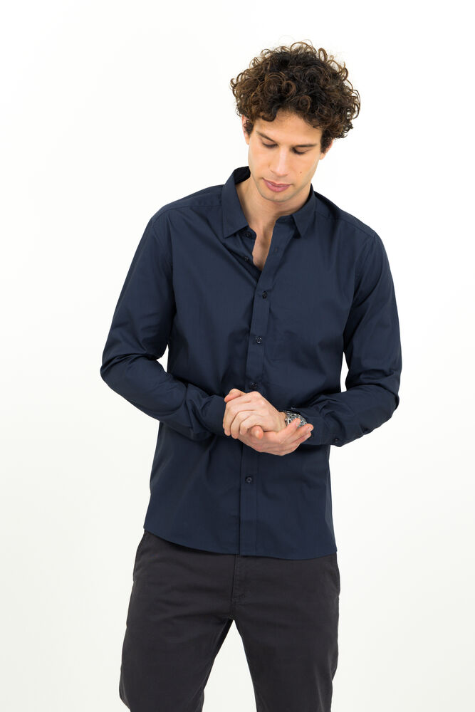 Penskjorte med skjult button-down krage og justerbare mansjetter. Easy Care behandlet stoff. Ton-i-ton knapper. Moderne passform.
