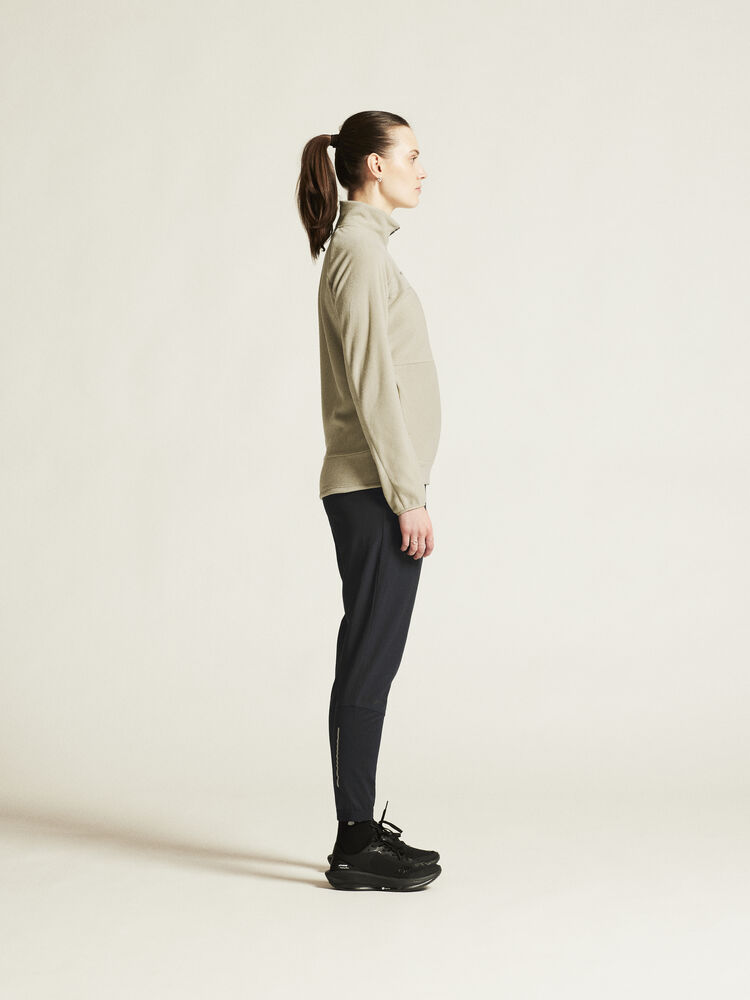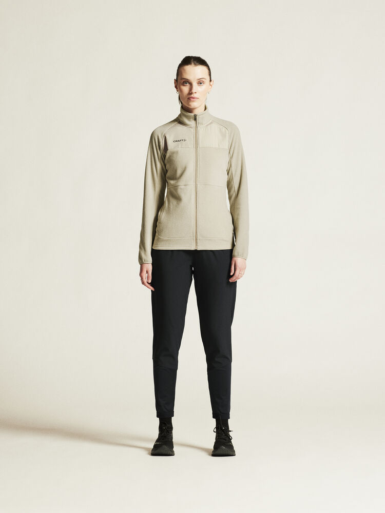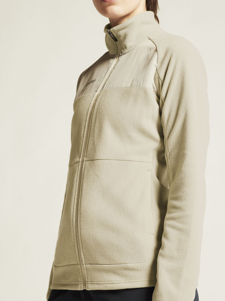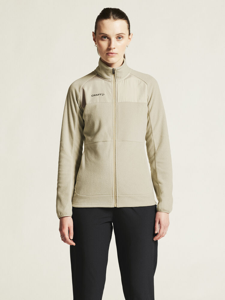 Avansert mellomlagsjakke til dame i myk, børstet fleece med atletisk snitt som passer like godt til friluftsaktiviteter som til hverdagsbruk. • Myk, børstet fleece. • Sidelommer med glidelås. • Craft-logo på brystet. • Regular fit.