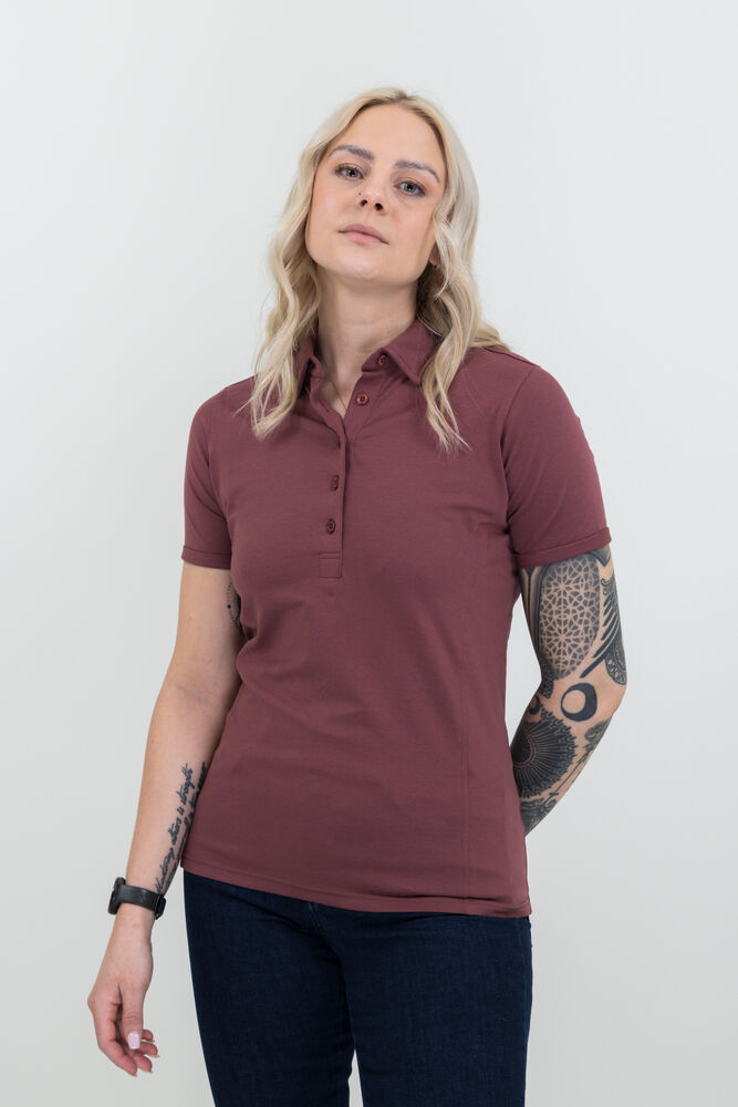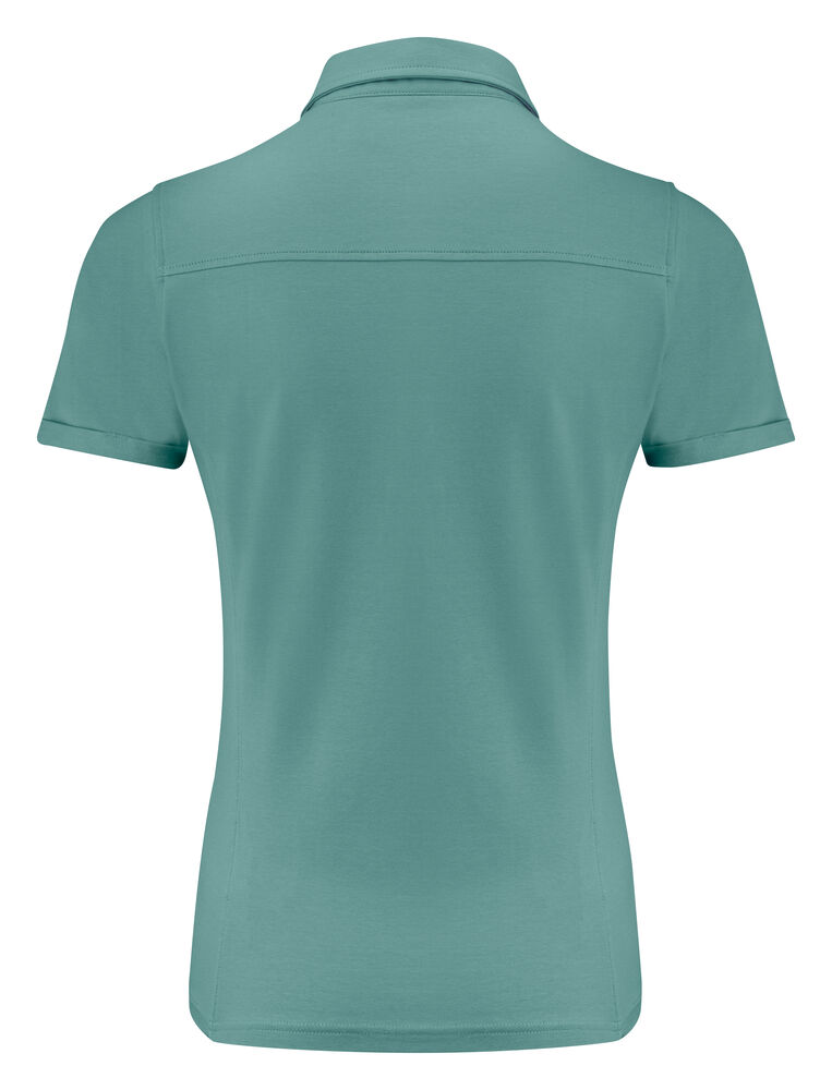 Stretchpolo i single jersey med skjult button down-krage. Piqueskjorten har brettede mansjetter ved ermene for et moderne utseende. Sidepaneler og bakstykke. Ton-i-ton knapper. Leveres i en biobasert, komposterbar pose. Øko-Tex sertifisert.