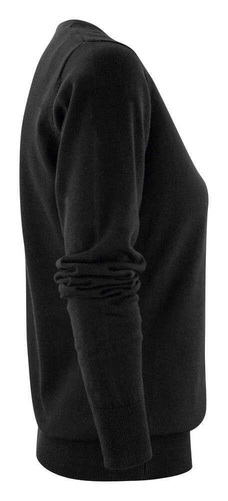 Finstrikket genser med V-hals til dame. 1×1 ribb i nederkant og på ermene.