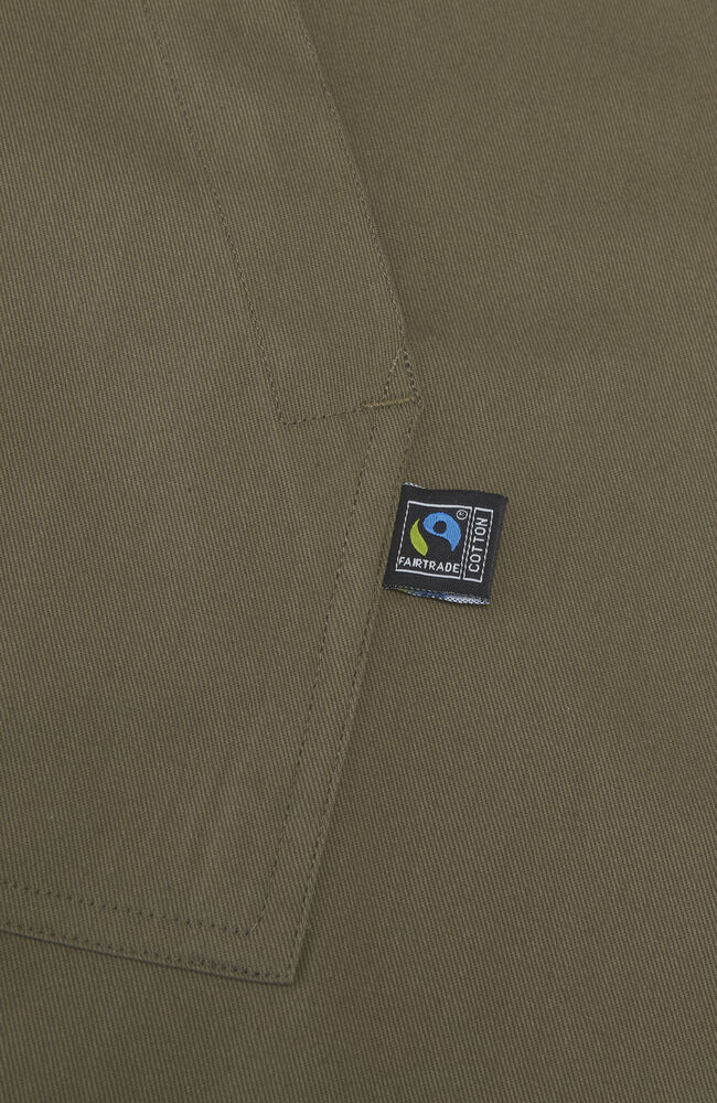Forkle med dobbel funksjon, frontlomme delt på midten og knyting i midjen.