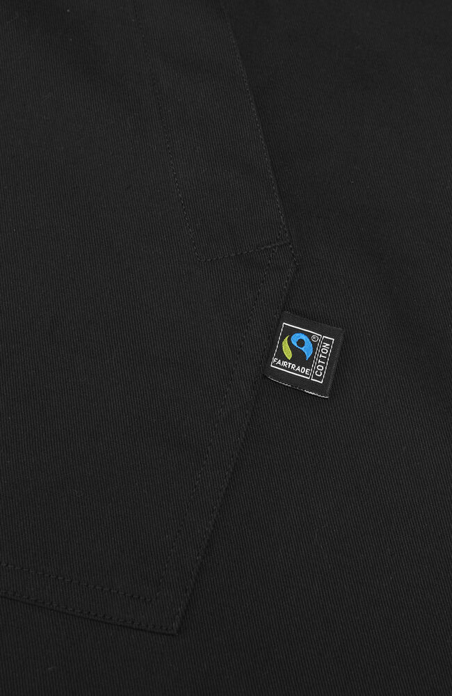 Brukes som brystforkle med justerbar nakkestropp, eller som midjeforkle da smekken kan brettes ned og skjules. Ton-i-ton sømmer. Forkledet i denim har gule sømmer.