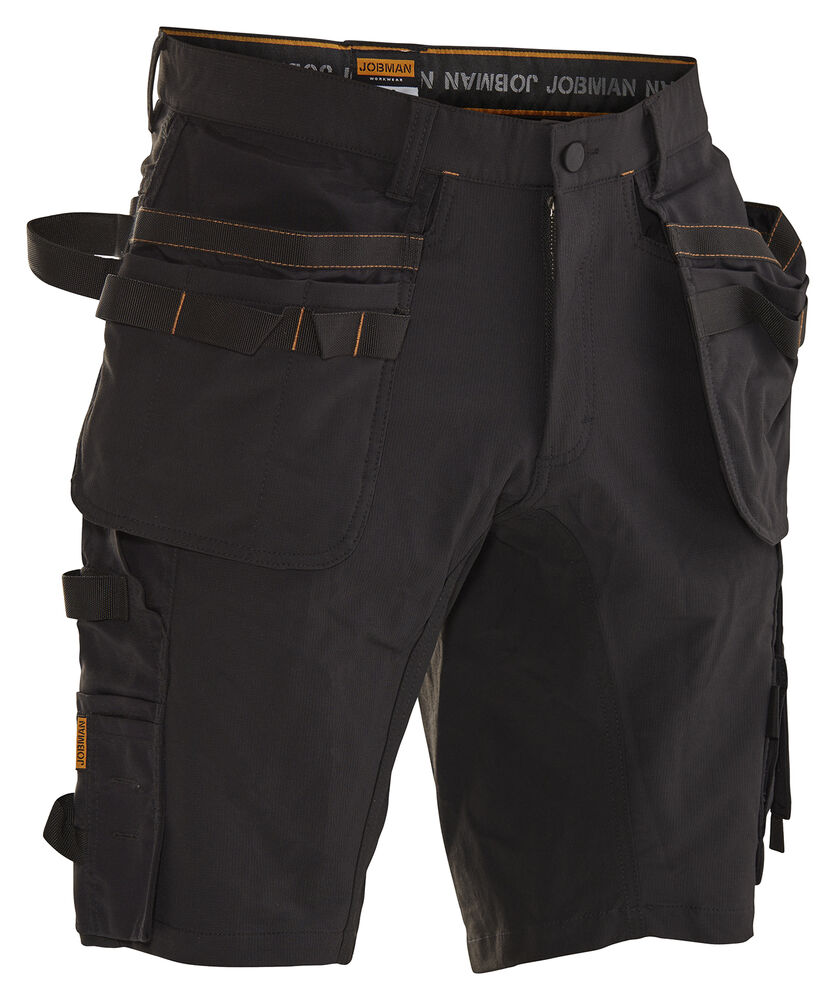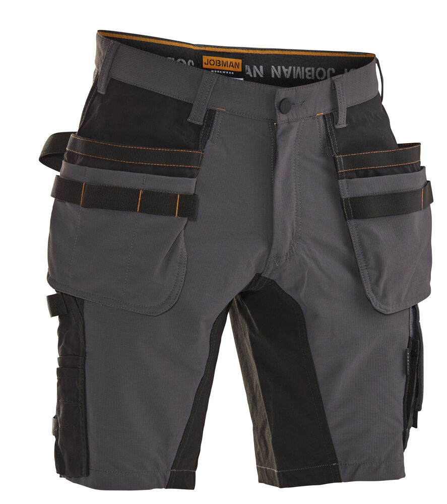 Smidig 4-veis stretch i slitesterkt ripstop-materiale. Forsterket stretch Cordura® i skrittet. Romslige hengelommer med ekstra rom og forsterket innside som kan puttes i frontlommene. Pene stolpelommer bak. Romslig benlomme med skjult glidelås, telefonlomme og rom for ID-kort. Hammerhank, tommestokklomme med knivholder. Silikonbåndet i bukselinningen holder buksen på plass. Ekstra beltehemper på de største størrelsene.