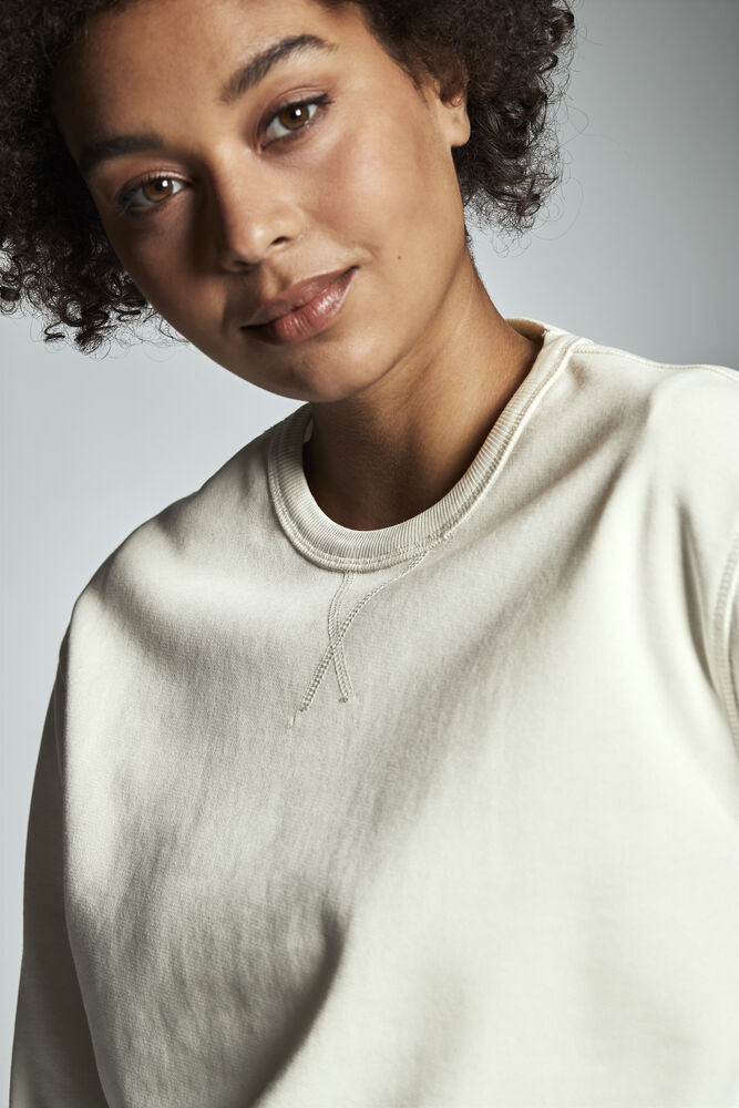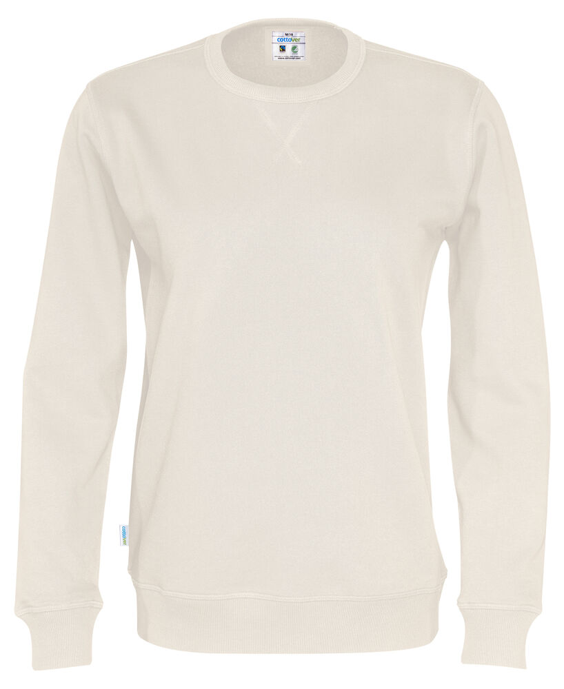 Rundhalset genser i unisex-størrelser med børstet innside. Normal passform. 2×2 ribbestrikk rundt hals, ermeavslutning og nederkant. Dekorative ton-i-ton sømmer i overlock.