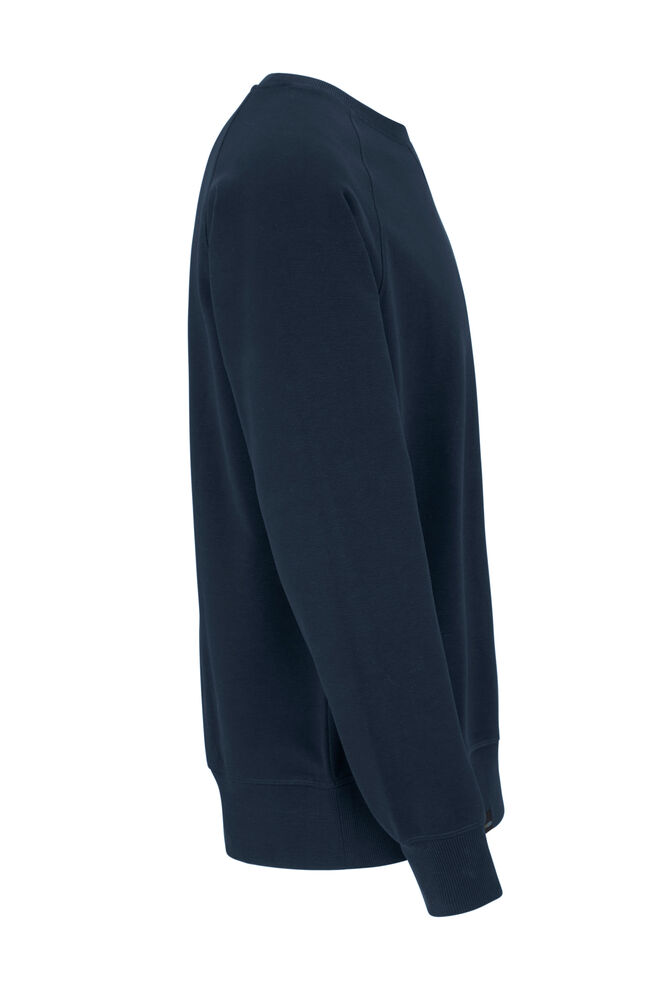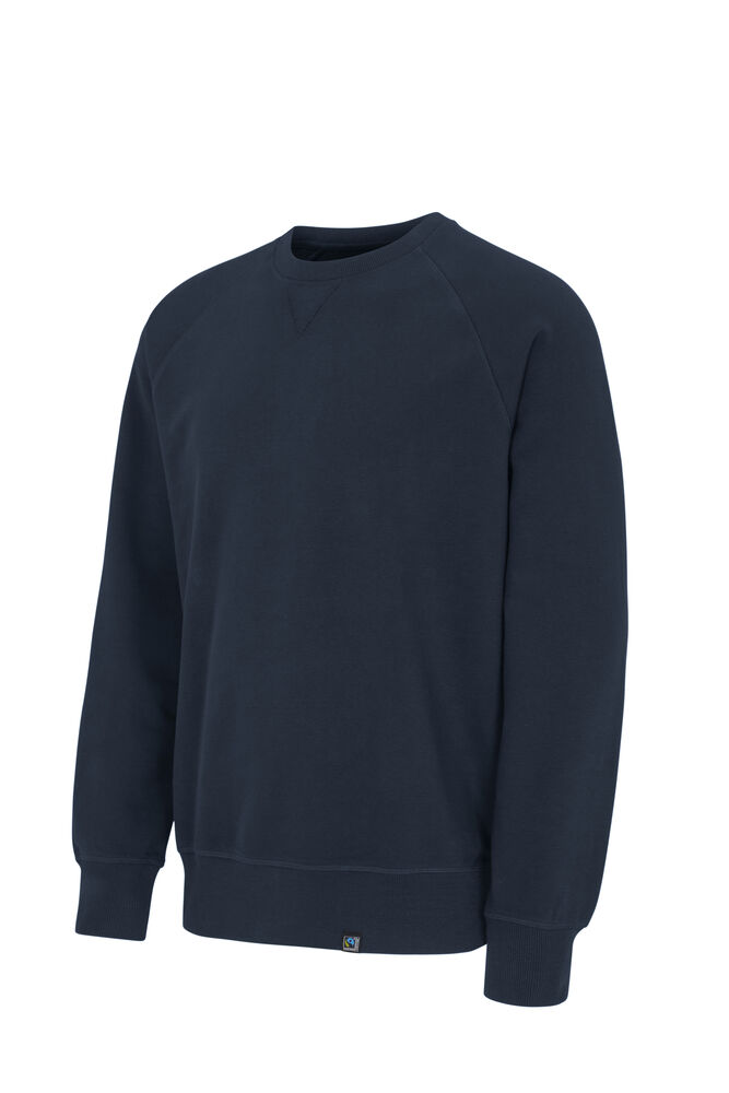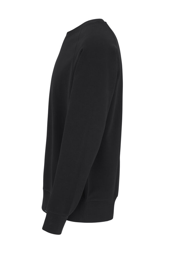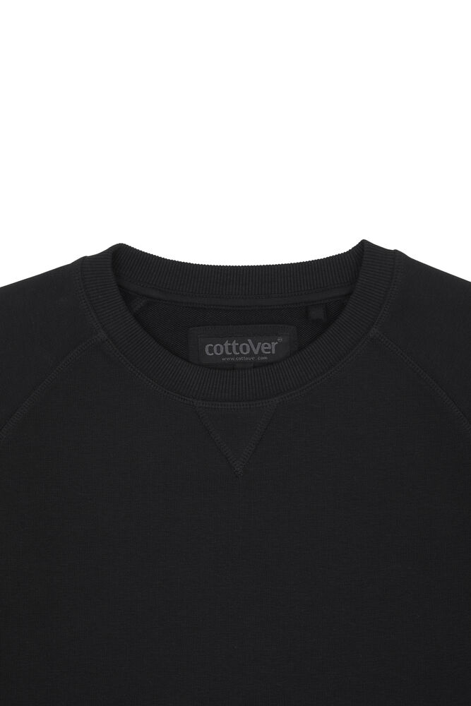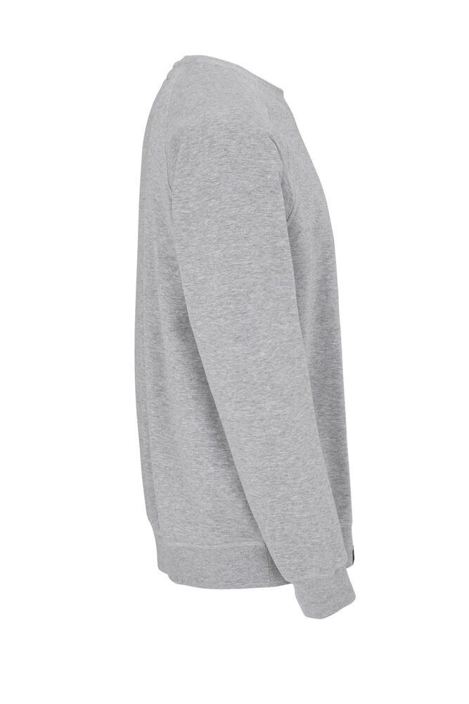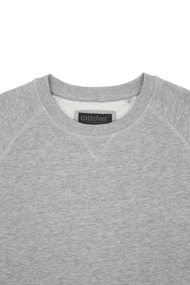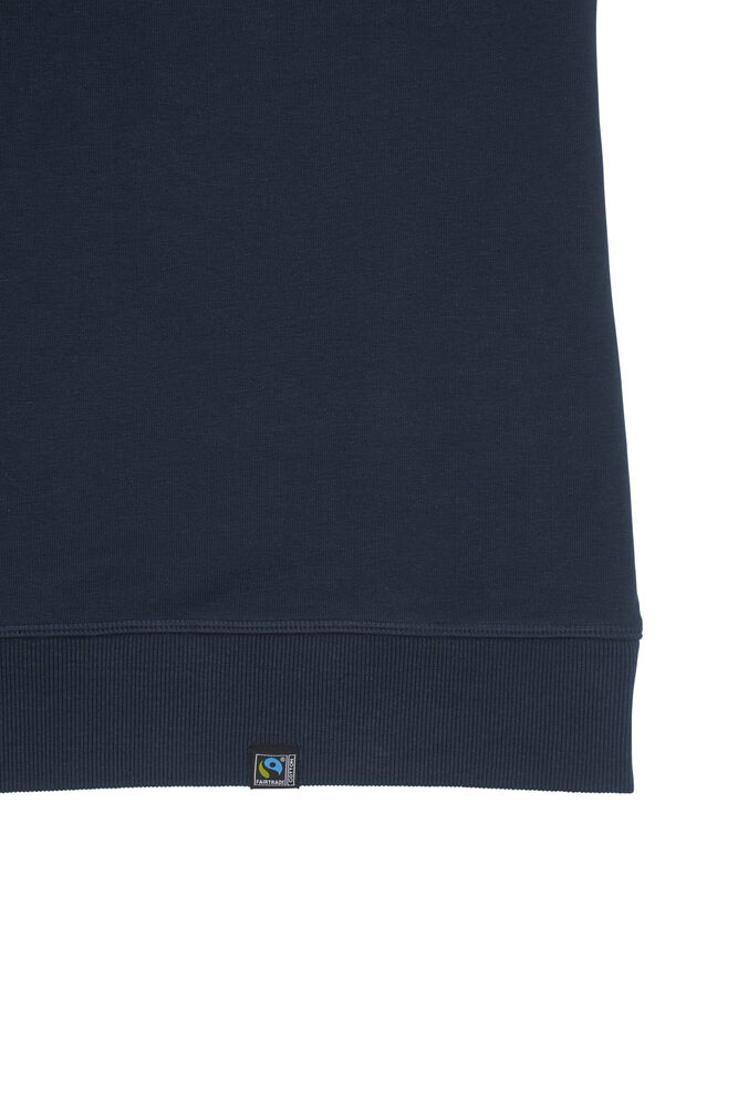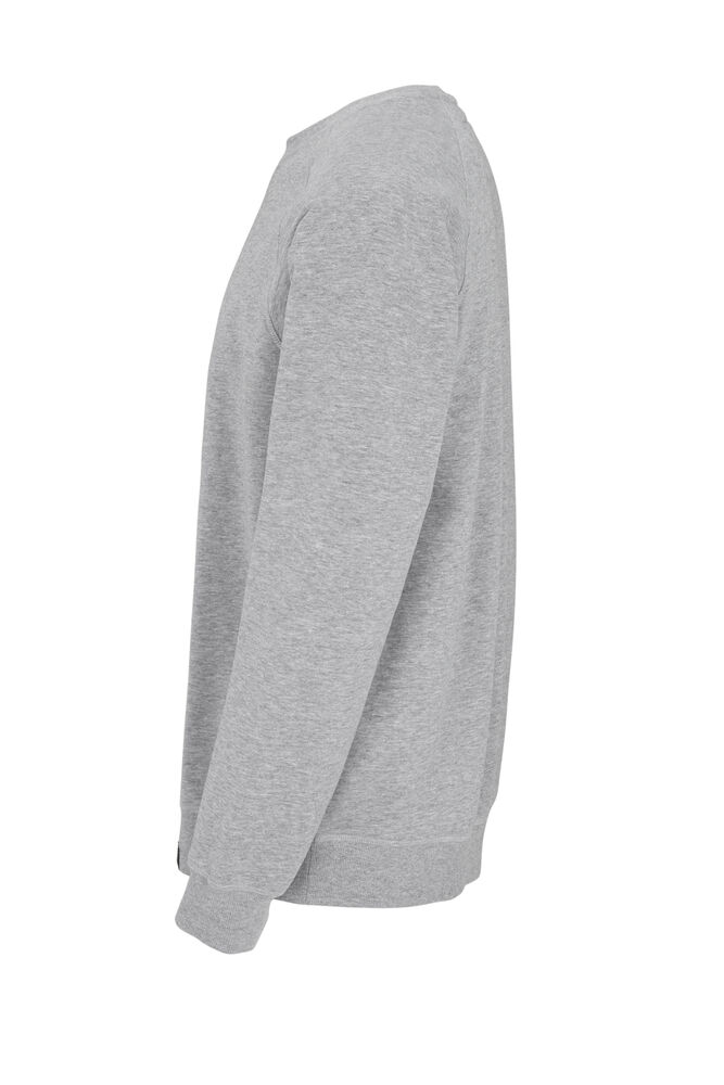 Kraftig sweatshirt laget av french terry (med små løkker på innsiden). 2×2 ribb rundt halsen, i mansjettene på ermene og i nederkant. Dekorsømmer i overlock.