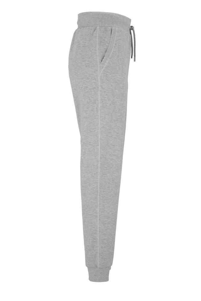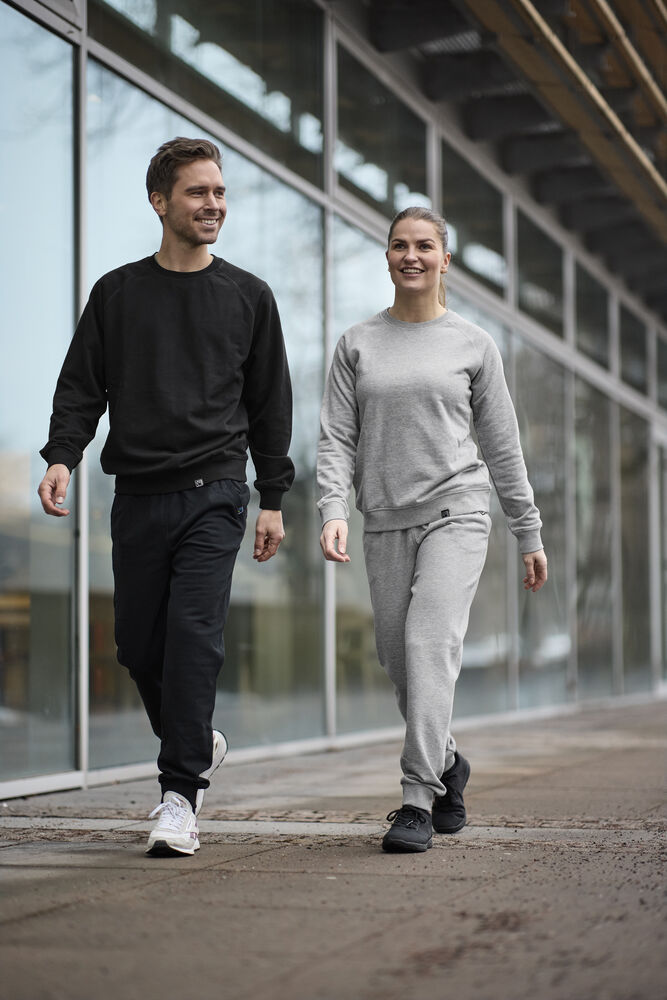 Kraftig sweatpants laget av fransk terry (med små løkker på innsiden). 2×2 ribb i lommeåpningene og i midjen – som også har strikk og snøring – ton-i-ton. Detaljer i antikk sølvmetallfarge. Mansjetter i lommeåpningene og benavslutningene. Dekorsømmer i overlock.