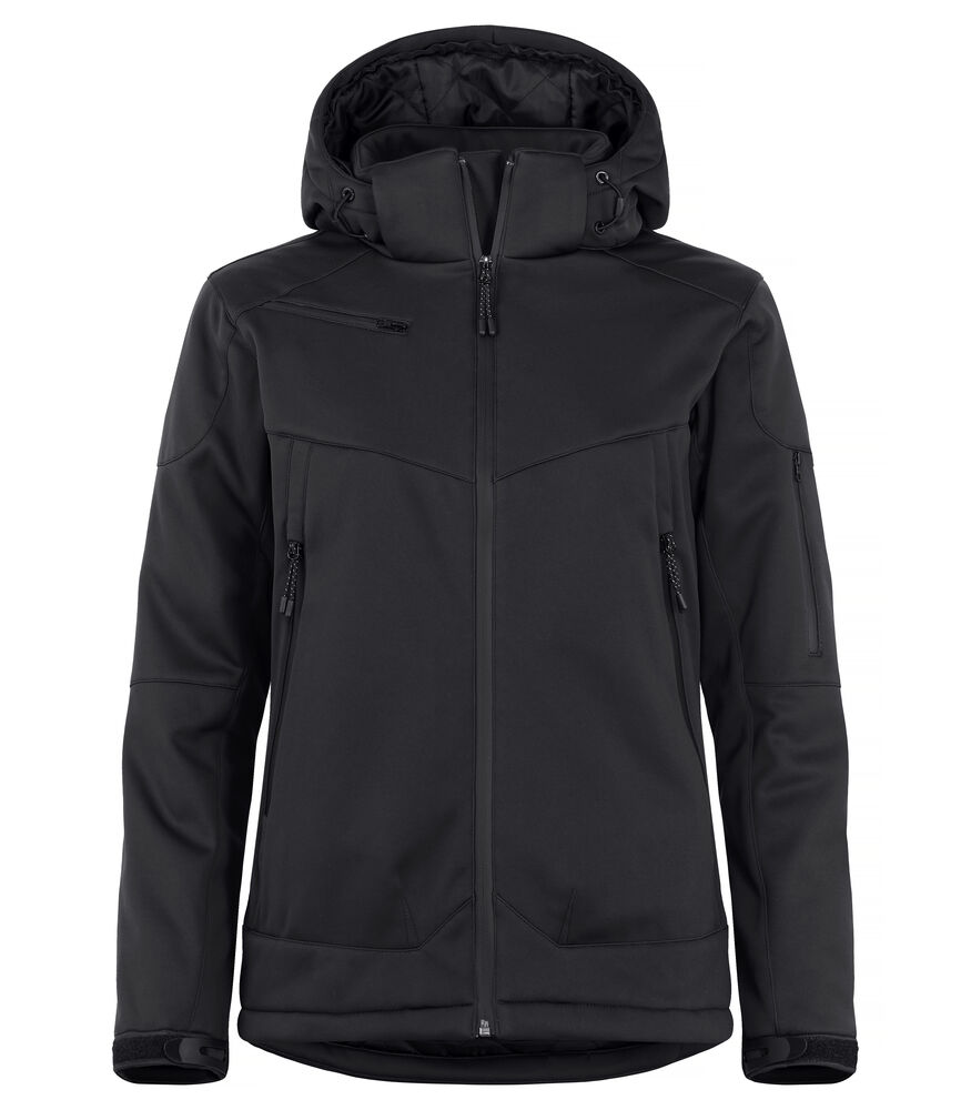 Komfortabel og moderne vattert softshelljakke. Jakken har en avtagbar og justerbar hette, formede ermer for enkel bevegelse, svart fôr, fire ytterlommer med vanntette glidelåser, én innerlomme en glidelås og én innerlomme av mesh. Jakken har også justerbare mansjetter med borrelås og reflekterende detaljer på ryggen. Kommer med broderingslomme.