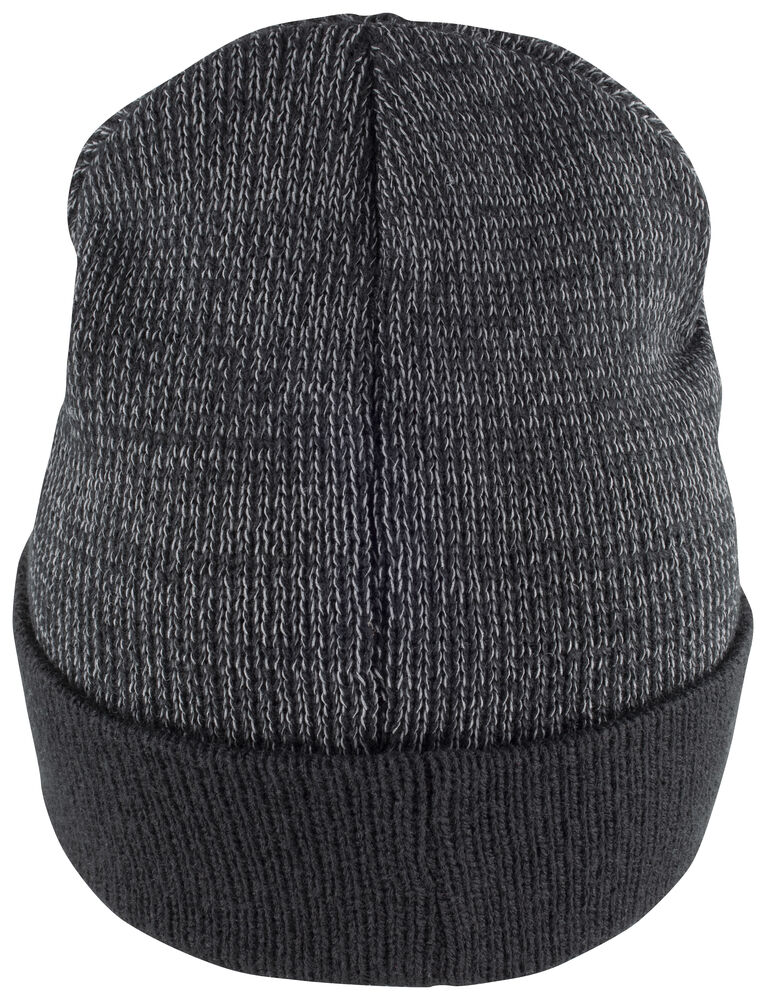 Finstrikket lue med 6-sømstopp, samt bomullsfôr på innsiden. To reflekterende striper for god synlighet.