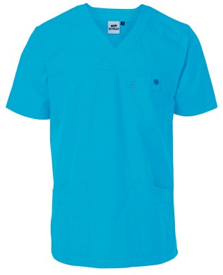 Kittel med optimal komfort, moderne design og gjennomtenkte detaljer. Rett modell med v-hals. Korte ermer. Sidelommer med telefonlomme og ekstralomme. Brystlomme med knapp og hempe.