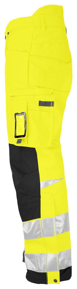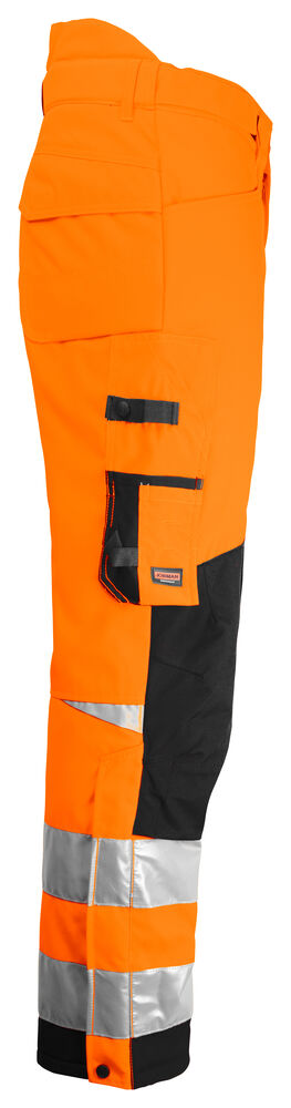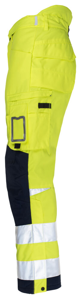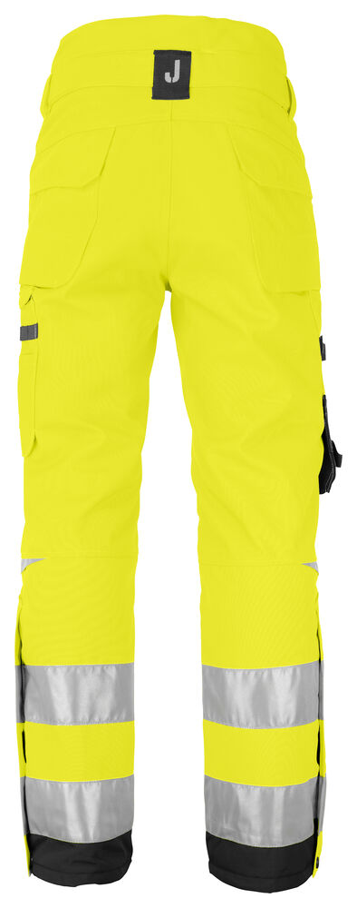 Lett bukse med quiltfôr i slitesterk og vannavstøtende 100 % STAR-polyester. Regulerbar midje. Høyere rygg motvirker kald trekk. Romslige frontlommer. Forsterkede baklommer. Benlomme med ID-kortholder og mobiltelefonlomme. Tommestokklomme med knivrom. Forbøyde knær med knebeskyttelseslommer der knebeskytterne kan justeres i to posisjoner. Snor i benavslutningen hindrer trekk. Bånd med trykknapp muliggjør feste mot sko. Glidelås opp til kne.Sertifisert ifølge EN 14404:2004+A1:2010 type 2, nivå 1 sammen med Jobmans knebeskytter 9943, 9944 og 9945.Sertifisert i henhold til EN 342 for beskyttelse mot kulde.Sertifisert i varselklasse 2 ifølge EN ISO 20471.