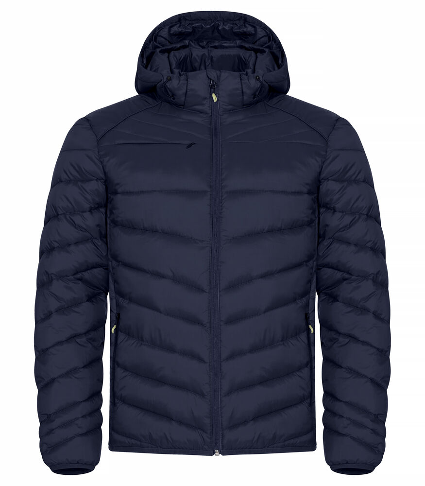 En varm, men likevel lett jakke med dunlignende vattering. Laget av 100 % resirkulert polyamid. Avtagbar hette, tre utvendige lommer med glidelås, og to innerlommer. Elastisk teip i nederkant og på ermeavslutningene. Leveres med farget stropp (til oppheng), øretelefonløsning og glidelåstrekkere.