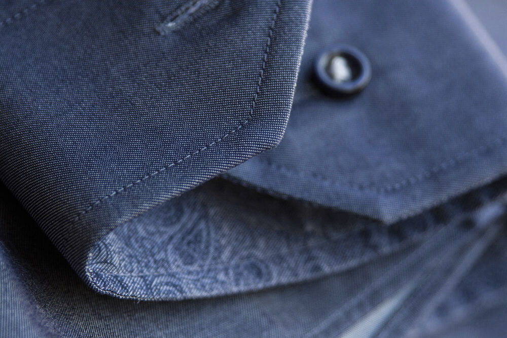 Den perfekte skjorten for enhver anledning. Med den karakteristiske indigofargen kan vårt berømte strykefrie stoff av fin twill minne deg om en kul “denimskjorte”. Red Bow 120 er designet med et konstraterende ton-i-ton paisley mønster i krage og mansjetter, samt hvite detaljer i knappene og rundt knappehullene.