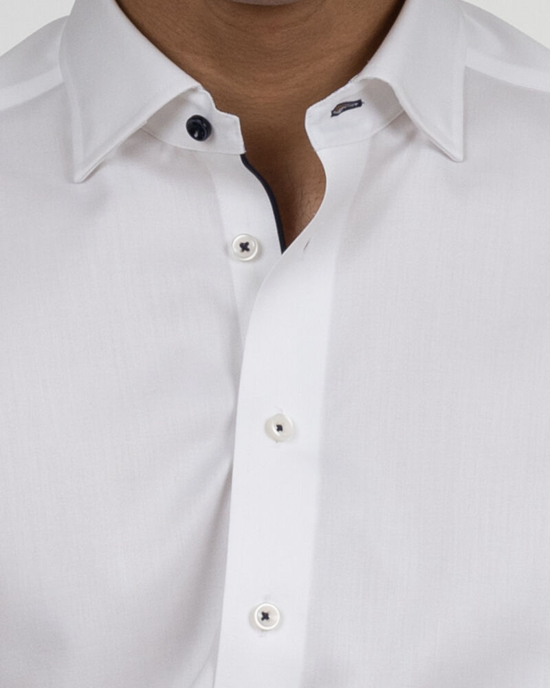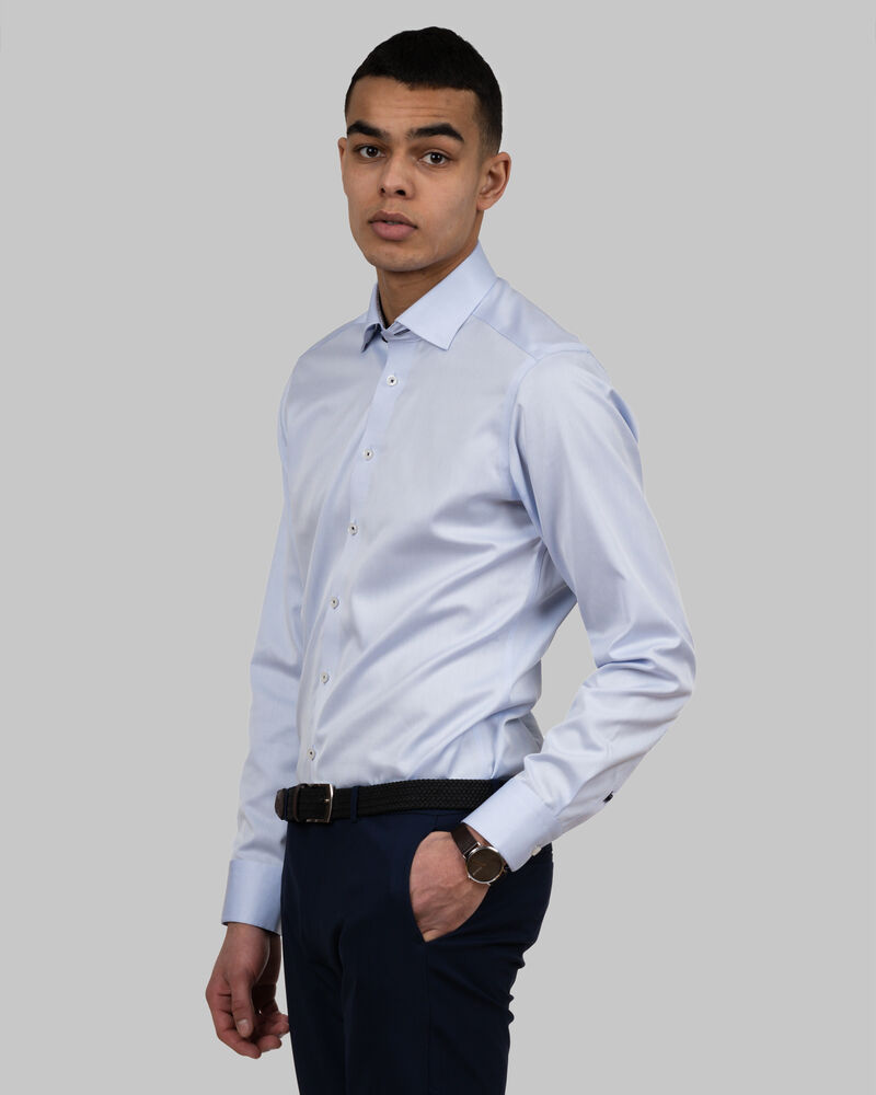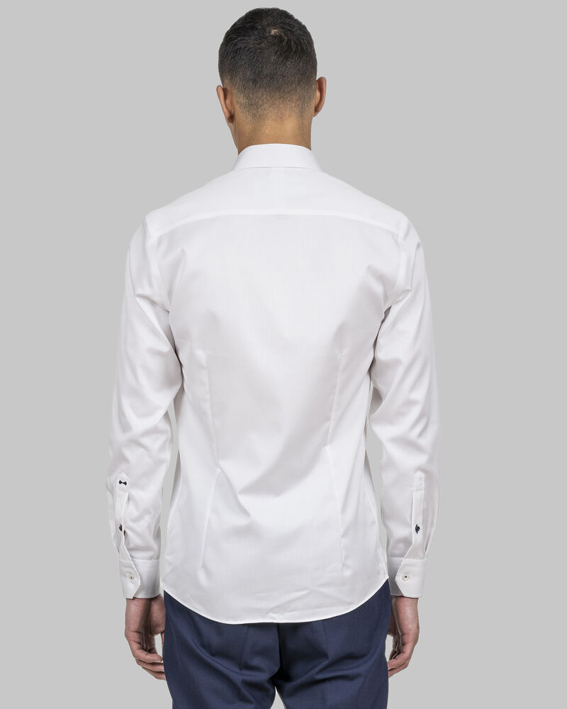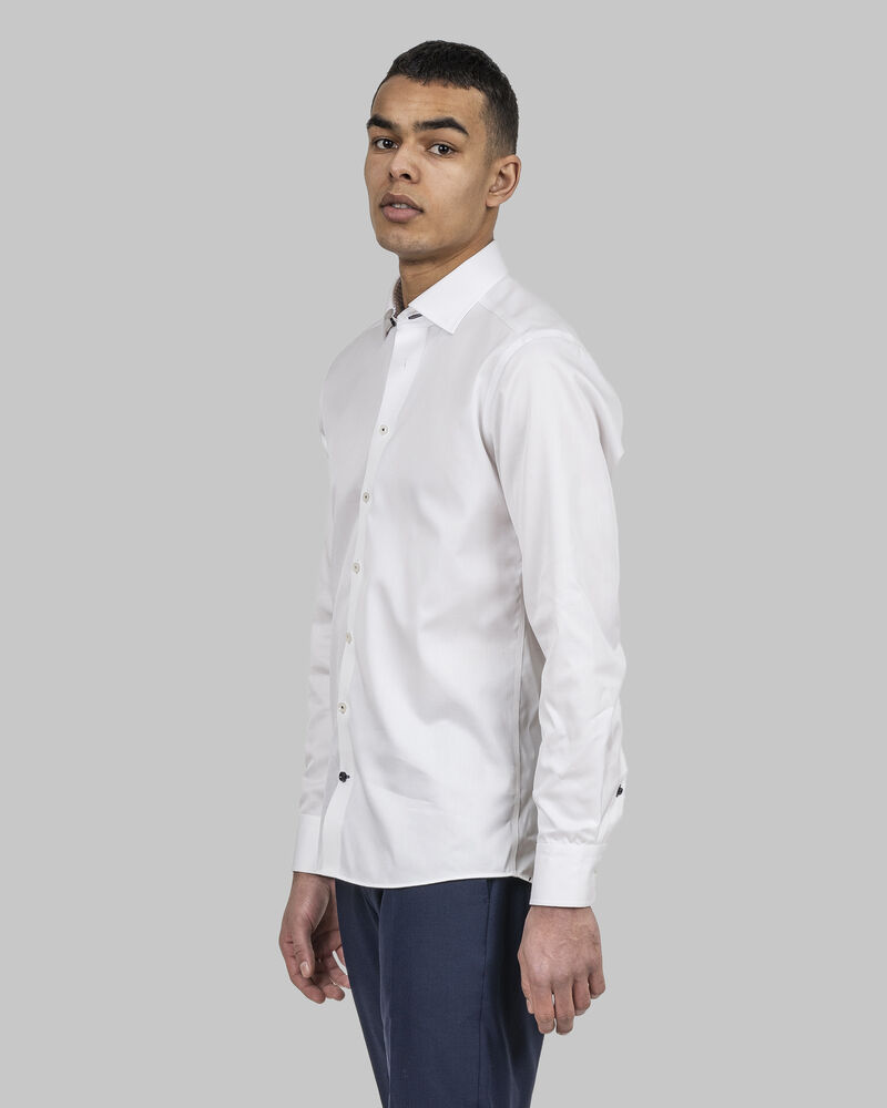 Mange av våre opprinnelige skjorter har hatt tid til å bli ekte klassikere. Nå har tiden kommet for å fornye en av våre mest populære modeller. Red Bow 122 er en variant av Red Bow 20 som er en av varemerkets mest populære modeller. Med nye, moderne detaljer og med skjult button-down krage er skjorten klar for et nytt tiår. • Hidden button down collar• Non-iron• Solid colors• 100 % long staple 2-PLY compact cotton, twill weave 124 g/m²• Split back yoke• Taped main-seams (no wrinkles)• Tall, 4 mm-thick buttons• Single angle cuff, w. cufflink hole• Flat Front placket• Curved hem