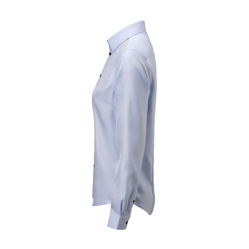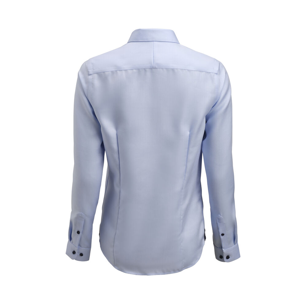 Denne strykefrie skjorten er laget i Royal Twill av høy kvalitet. Den stilige twill-teksturen – kombinert med de subtile detaljene og den myke, moderne utskårne kragen med skjulte knapper – gjør den til en perfekt moderne Business Classic med en twist. Myke mansjetter med ekstra hull for mansjettknapper. Teipede sømmer slik at skjorten holder seg godt etter vask. Delt bærestykke for større bevegelsesfrihet. Avrundet bunn. 4 mm knapper for et moderne utseende. Woman Contemporary er litt videre over bryst og midje, og også litt lenger sammenlignet med «normal» damemodell. Ingen sømmer i front.