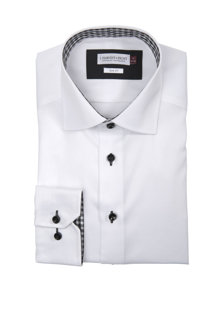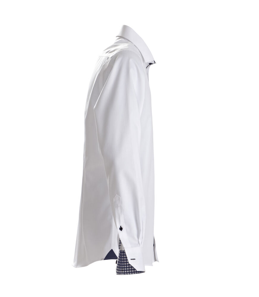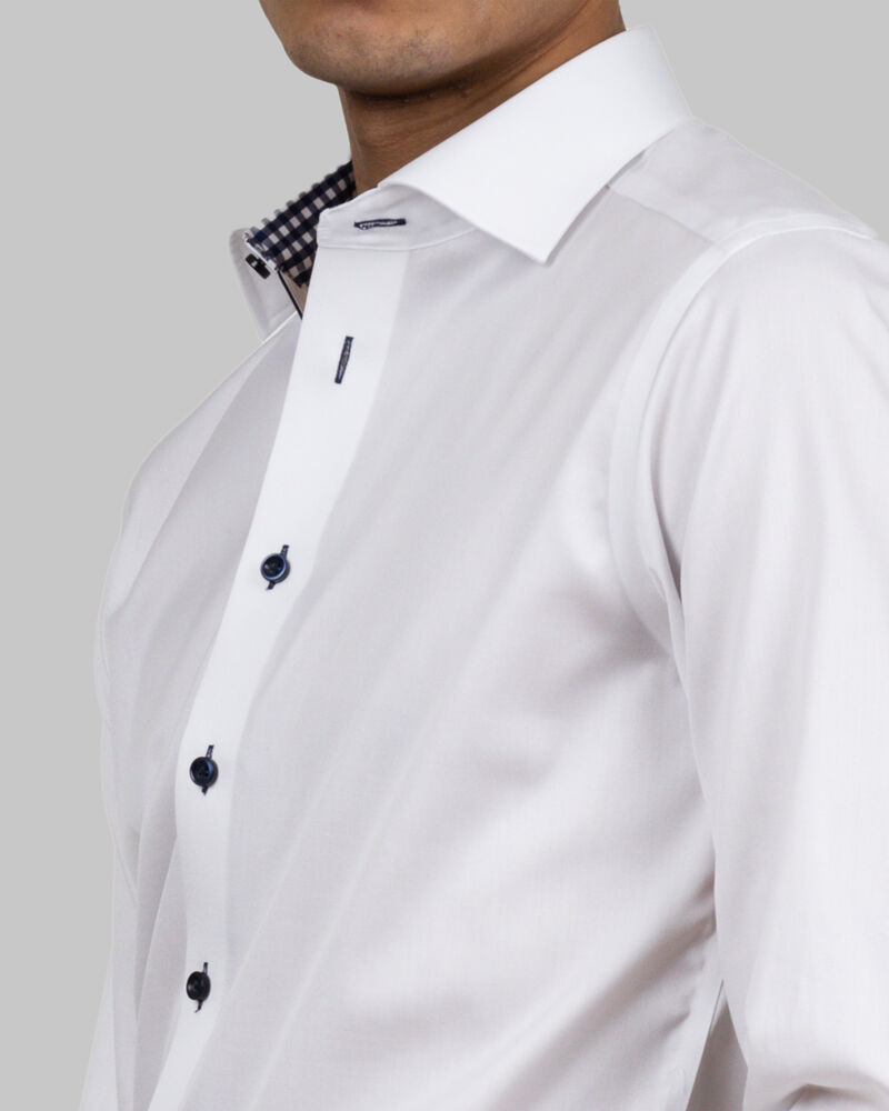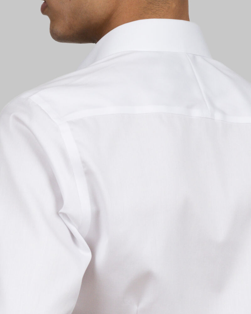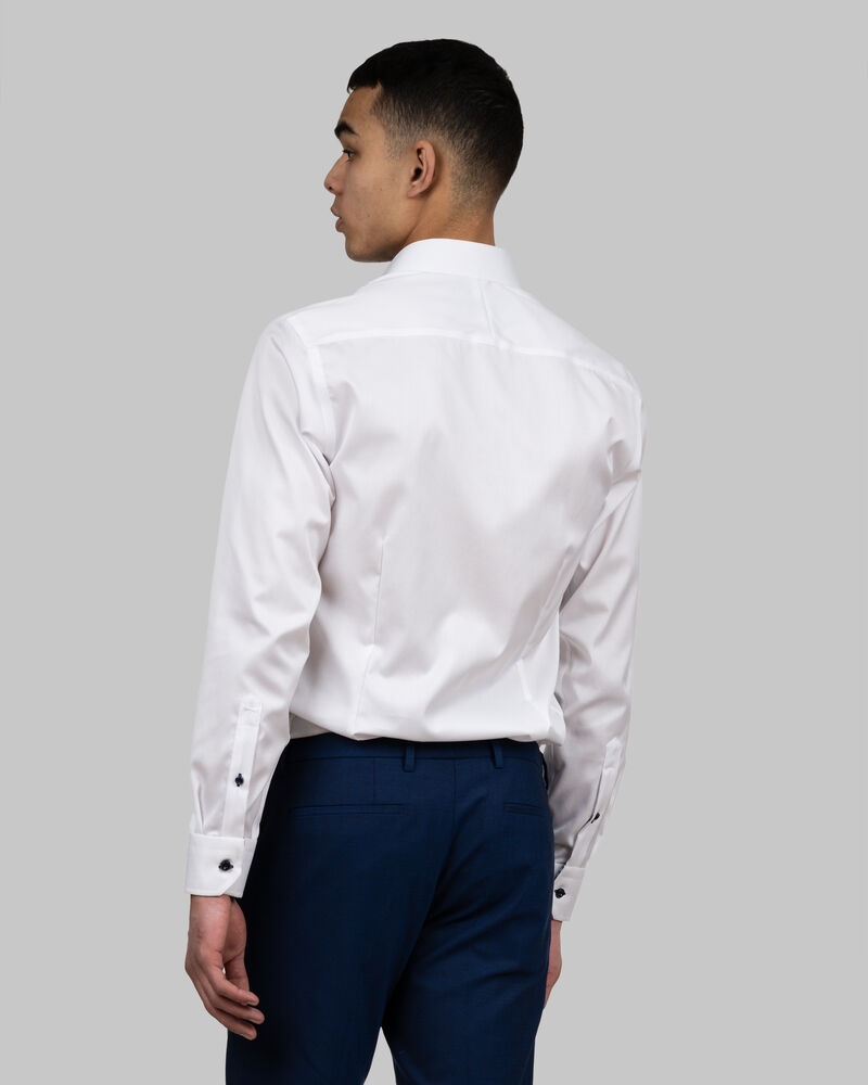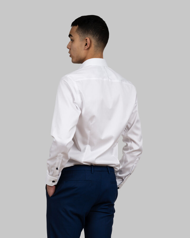 Skjortene er laget i vår favoritt twill-tekstur med høy ytelse. Dette gir en perfekt glans, resulterer i en betydelig god og myk følelse mot huden, og gjør dem mindre gjennomsiktig enn lignende hvite dresskjorter.
