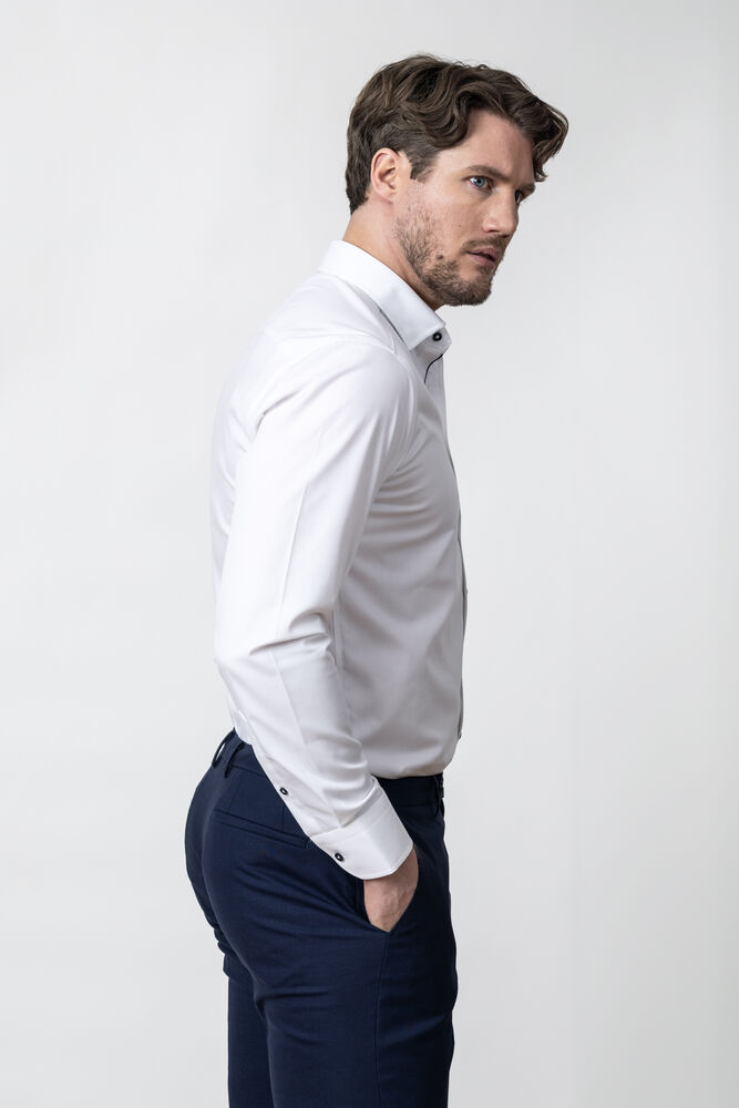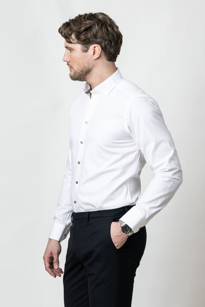 En business-drøm! Yellow Bow 56 har moderne kontrastdetaljer, subtile knapper, ekstra knapphull til mansjettknapper, samt en smalere, myk krage med skjult button-down. Som alltid kommer våre business-skjorter med split yoke og teipede sømmer. Easy Care-behandlet.