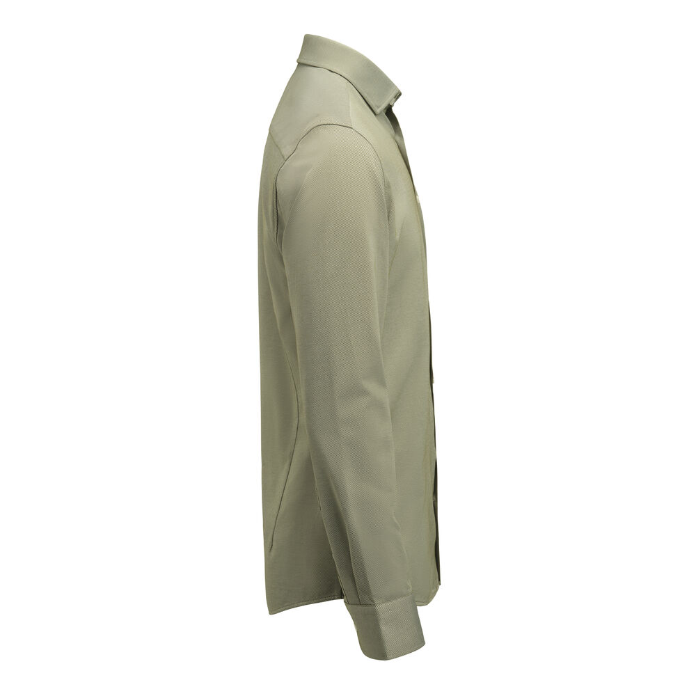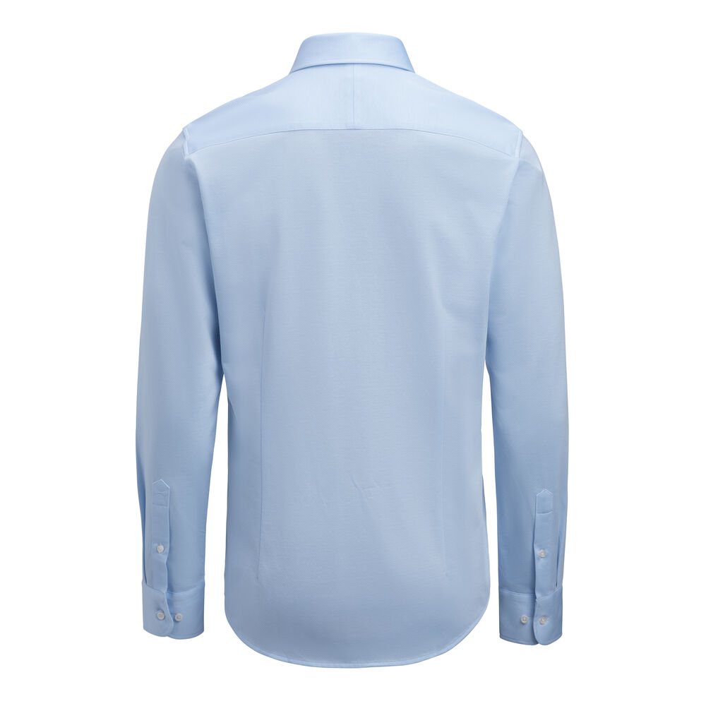 King Knit-teknikken gir denne skjorten en fin tekstur og naturlig stretch. Stoffet er Easy-Care-behandlet og laget av en blanding av Preferred Materials. Den hvite varianten er ensfarget, mens teksturen er veldig synlig i de himmelblå og grønne variantene. Lengden er 3 cm kortere enn våre andre Yellow Bow-skjorter.