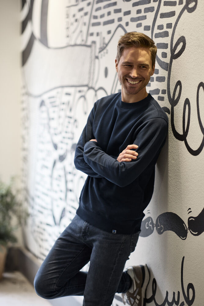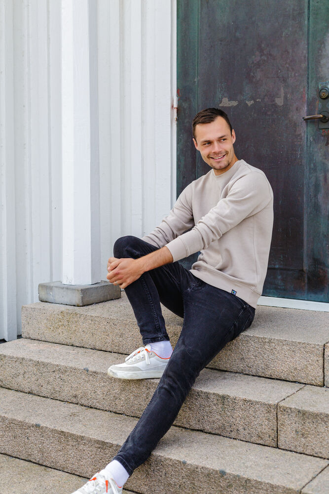 Vellaget genser i et behagelig, mykt og litt tyngre materiale med børstet innside. 2×2 ribb rundt halskanten, mansjetter i ermeavslutningene og nederkant