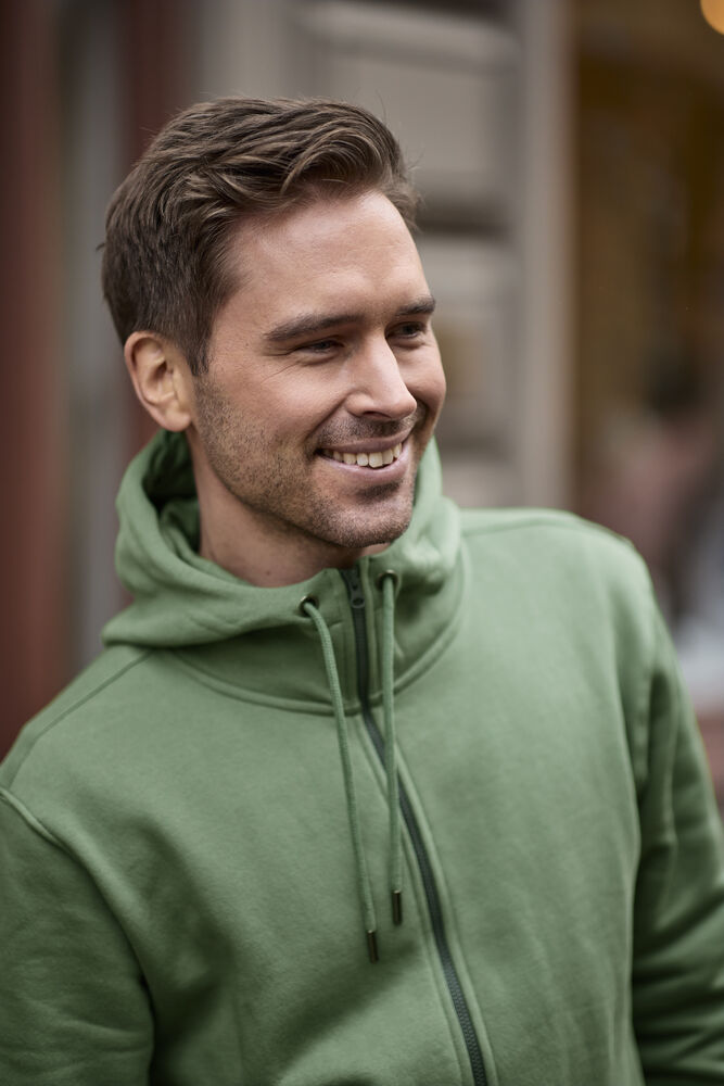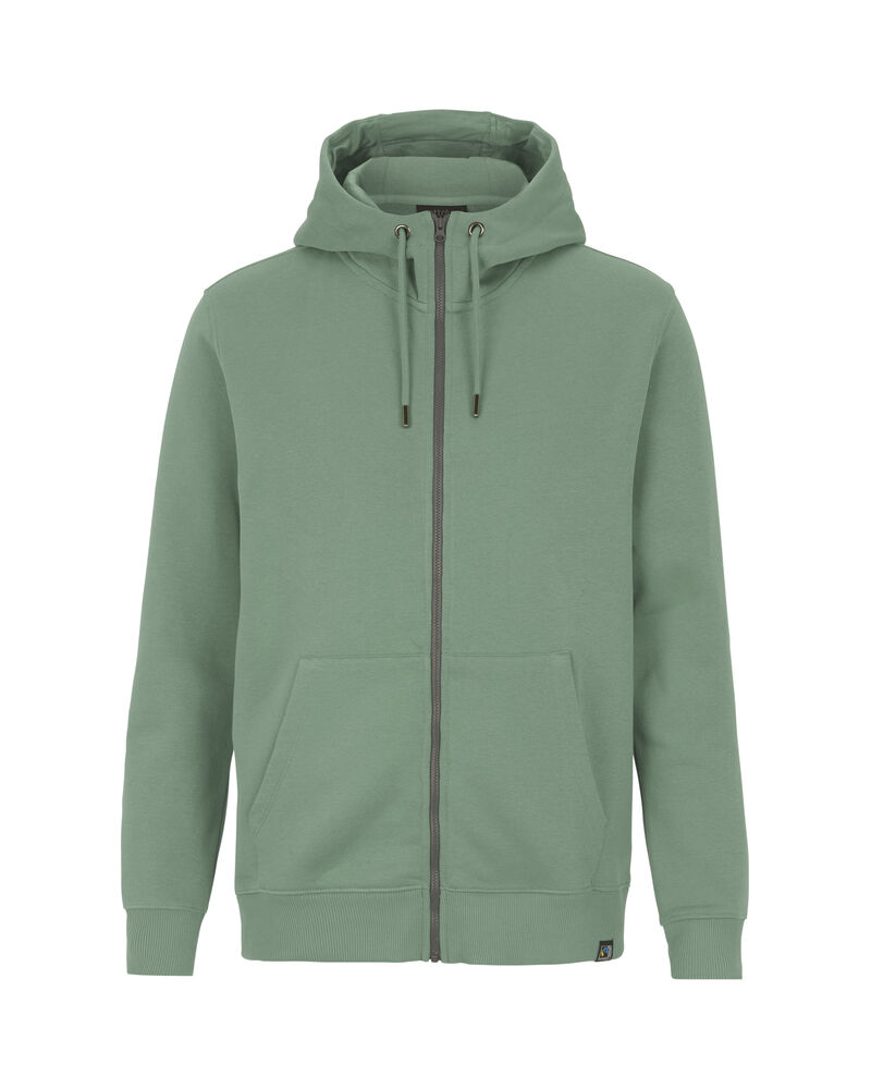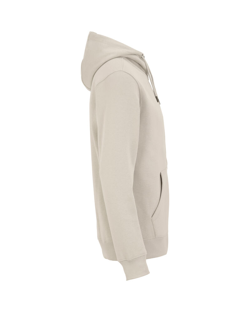 Hettegenser i et behagelig, mykt og litt tyngre materiale med børstet innside. Antrasittgrå YKK Vislon® glidelås. Snøring i hetten – med detaljer i antikk sølvmetall. To utvendige lommer i front. Hette med doble sømmer og fôr i single jersey. 2×2 ribb i mansjetter og i nederkant.