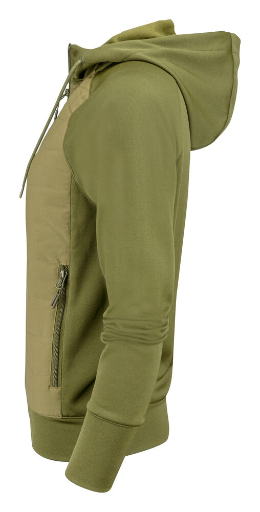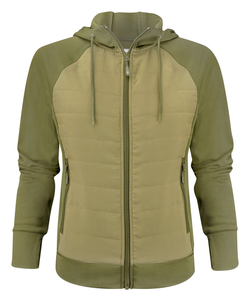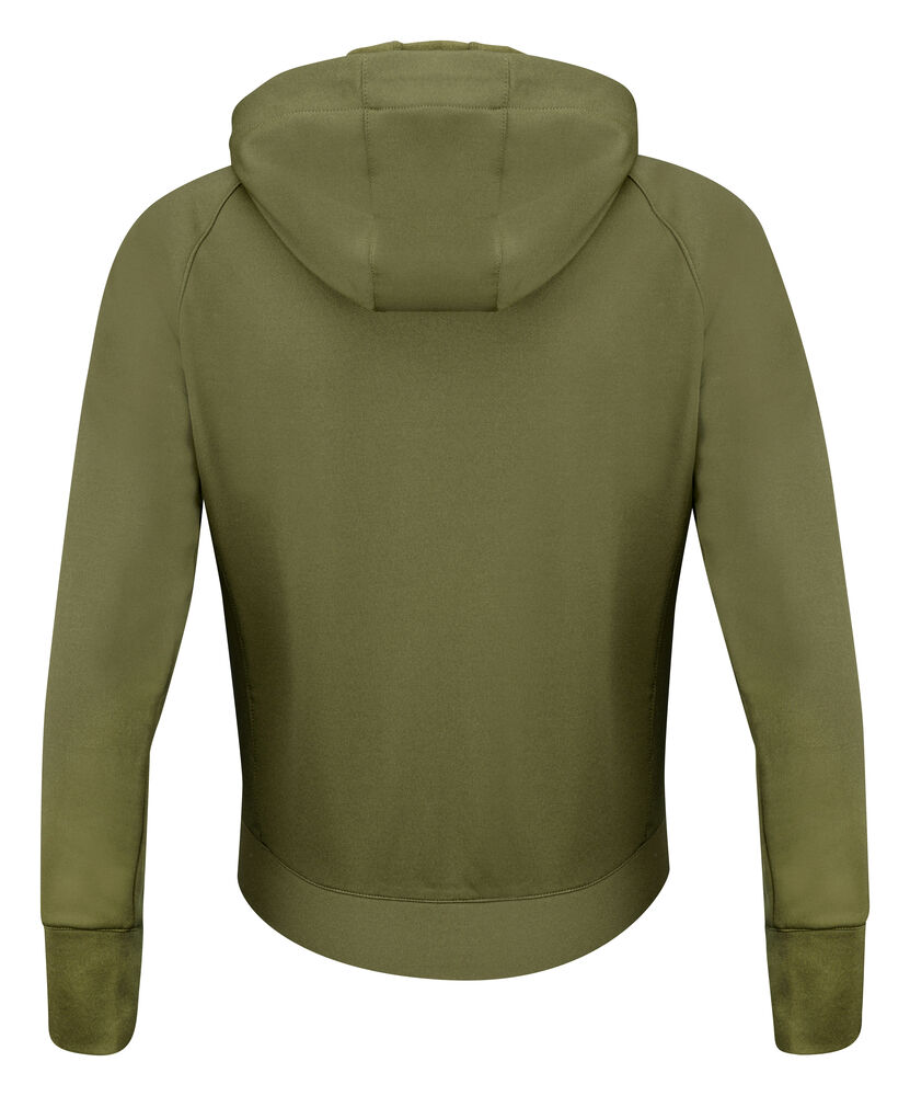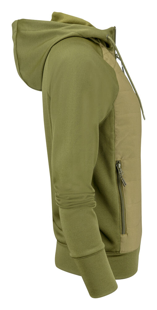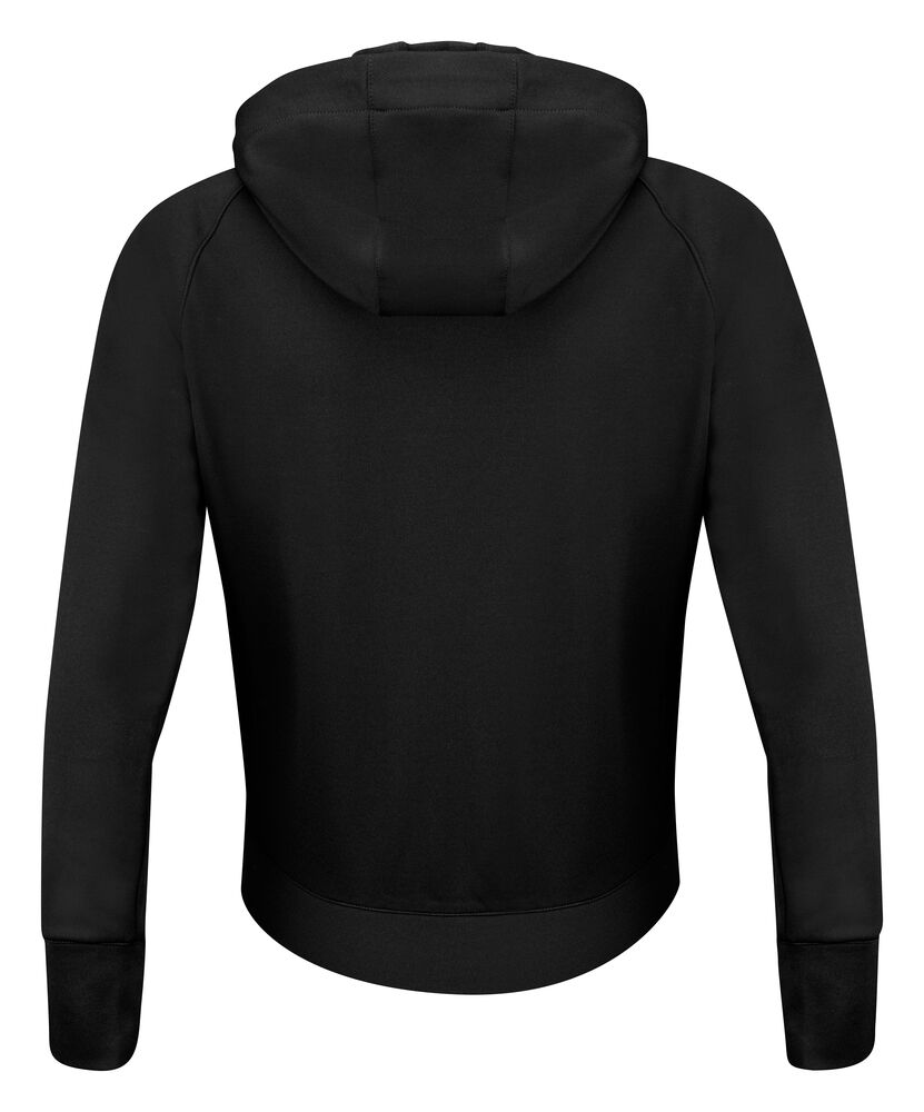 Hettegenser med hel glidelås. Frontdelen – som er lett vattert – er kontrastfarget. Genseren har to sidelommer med glidelås, raglan-ermer og tommelåpninger. Leveres i en biobasert, komposterbar pose.