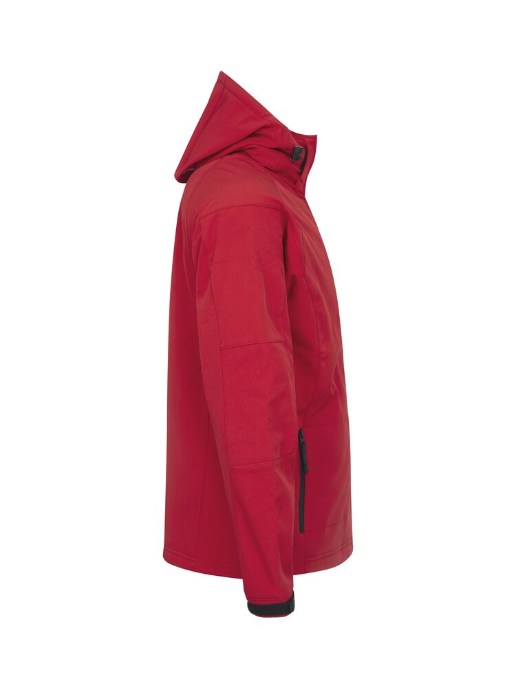 Vind- og vannavvisende softshelljakke. Vanntett glidelås i front og på sidelommene. Innerlomme med glidelås på venstre side. Avtagbar hette. Justerbar borrelåslukking nederst på ermene. Hette kan justeres med elastiske snorer. Skjult broderingslomme med glidelås på innsiden.