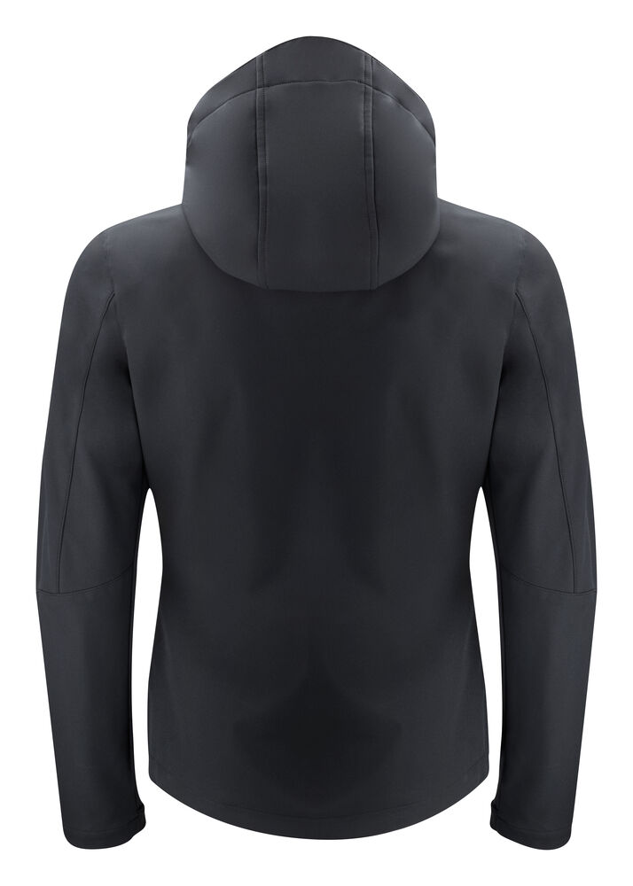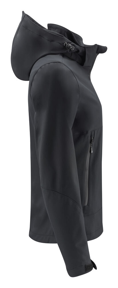 Vind- og vannavvisende softshelljakke. Vanntett glidelås i front og på sidelommene. Innerlomme med glidelås på venstre side. Avtagbar hette. Justerbar borrelåslukking nederst på ermene. Hette kan justeres med elastiske snorer. Skjult broderingslomme med glidelås på innsiden.