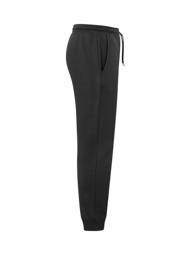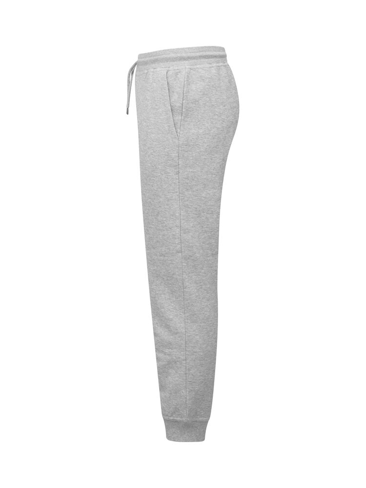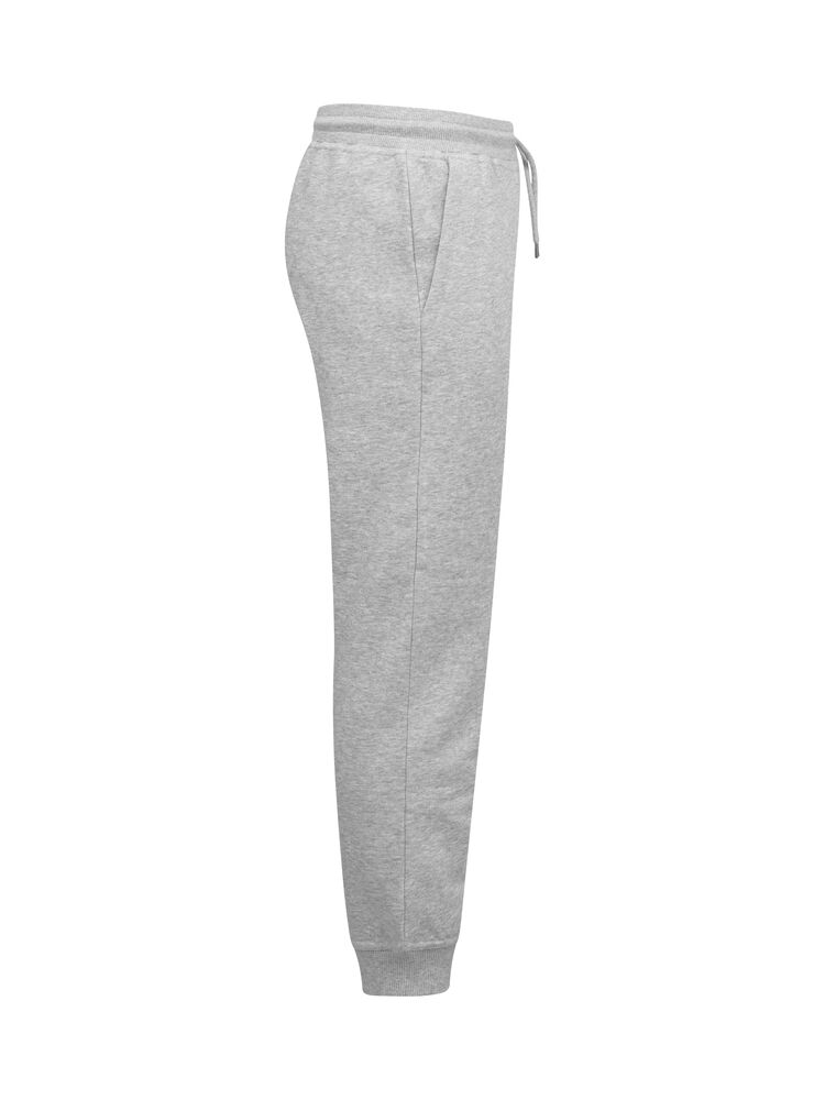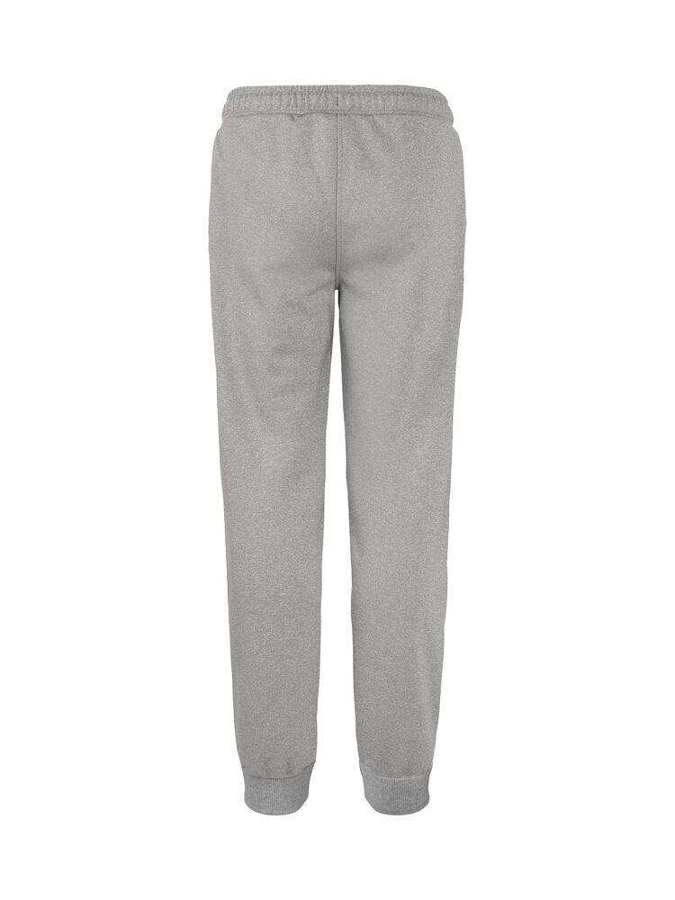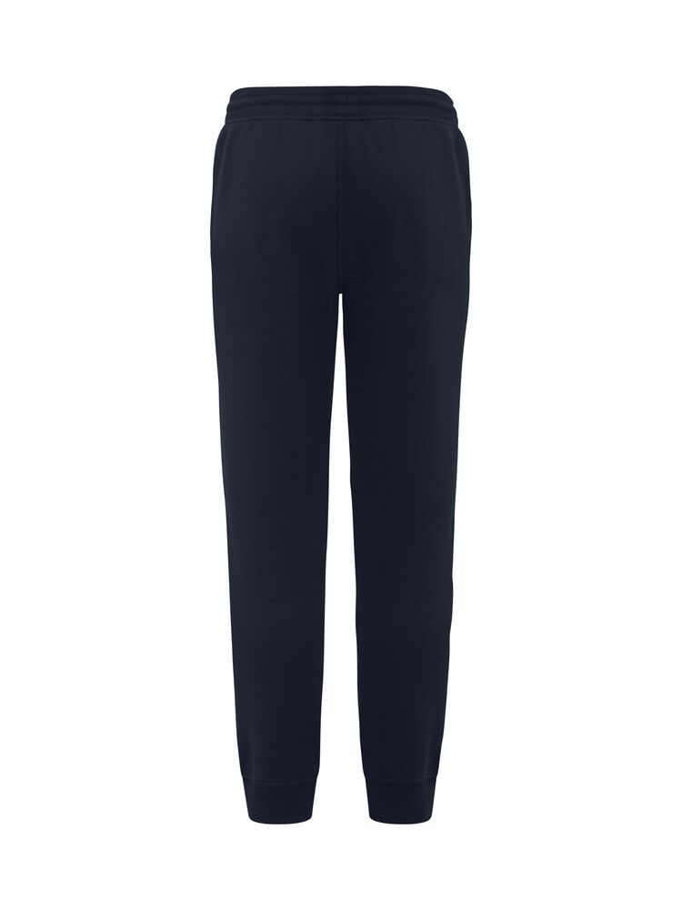 Junior joggebukse laget av en blanding av bomull og resirkulert polyester. Buksen har to lommer foran og børstet innside. Midje og benavslutninger i 2×2 ribb med dobbel søm. Størrelse 90/100 er laget uten snor i midjen for å øke barnets sikkerhet. Lett avtagbar etikett for rebranding. Det myke, stabiliserte stoffet med antipilling-egenskaper er designet for intensiv vask.