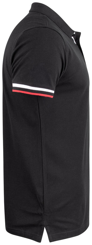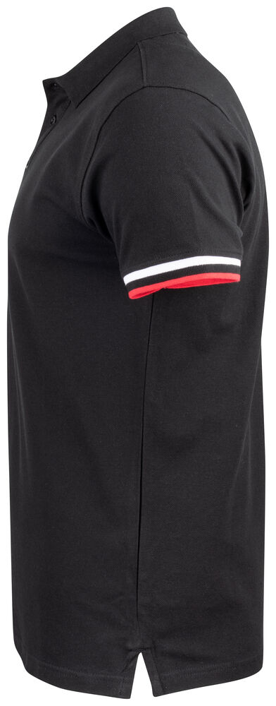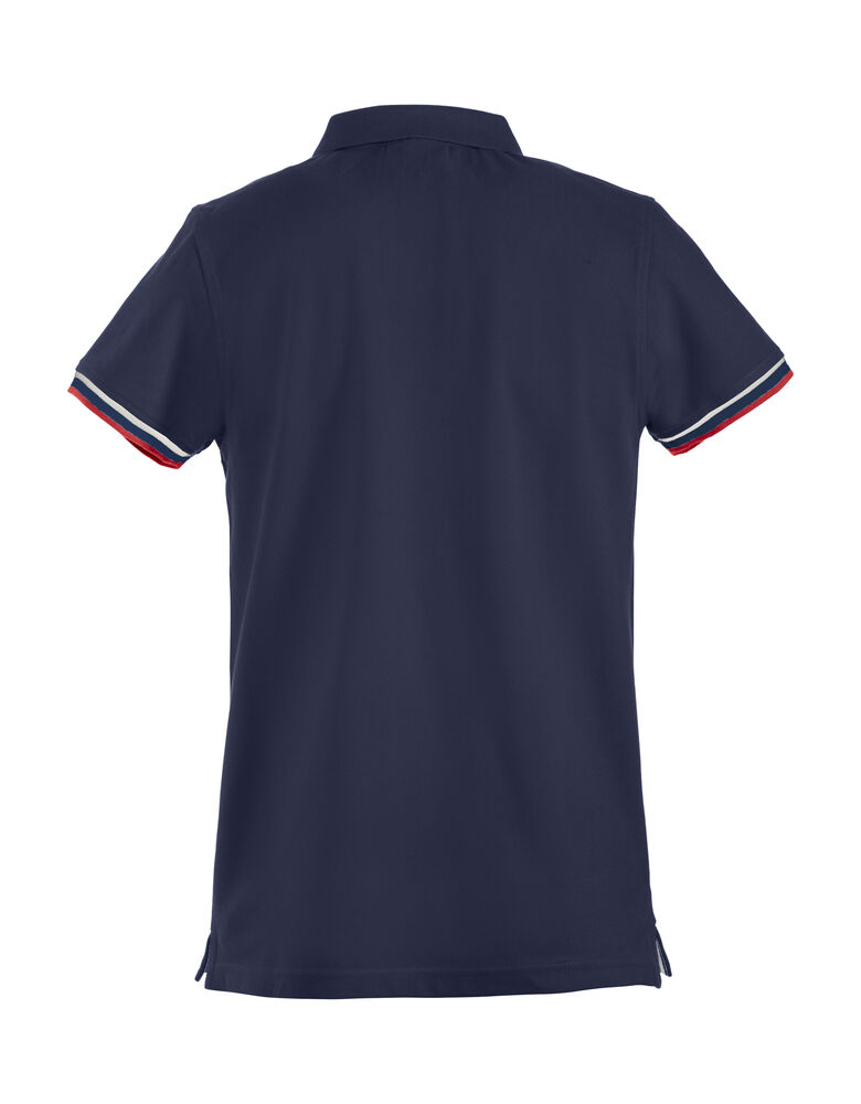 Fin og trendy bomullspique med trefarget kontrast på krage, nakkebånd og splitt.