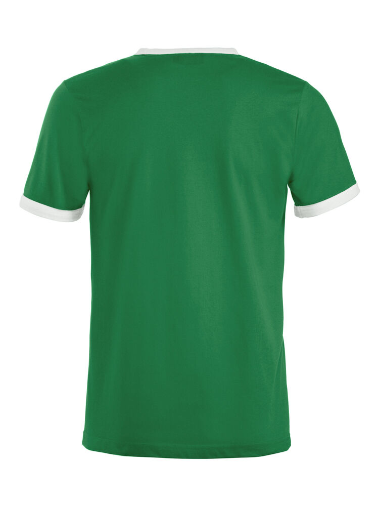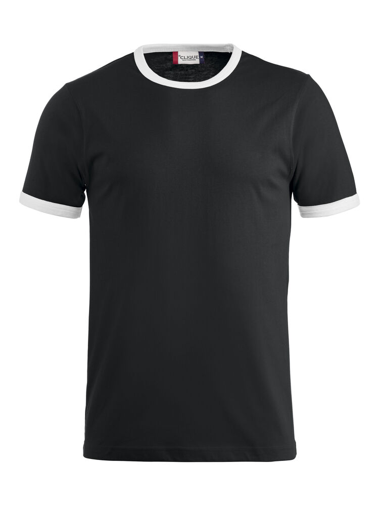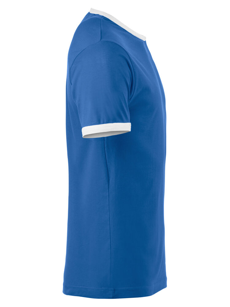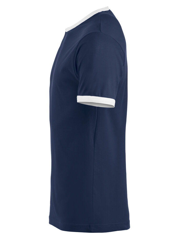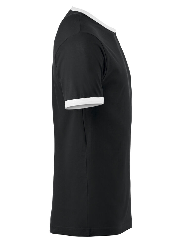 Moderne T-shirt med noe smalere passform, kontrastfarge i hals og ermer. Teipet krage med elastan.
