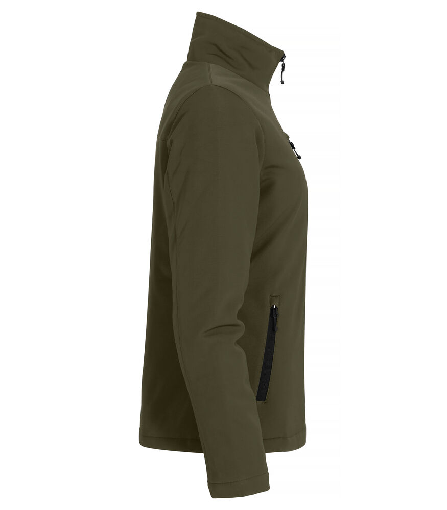 En vattert softshelljakke i rent snitt. Tre ytterlommer med reverserte SBS-glidelåser og en innerlomme. Jakken har svart fôr og broderingslomme med glidelås. Avtagbar etikett i nakken.