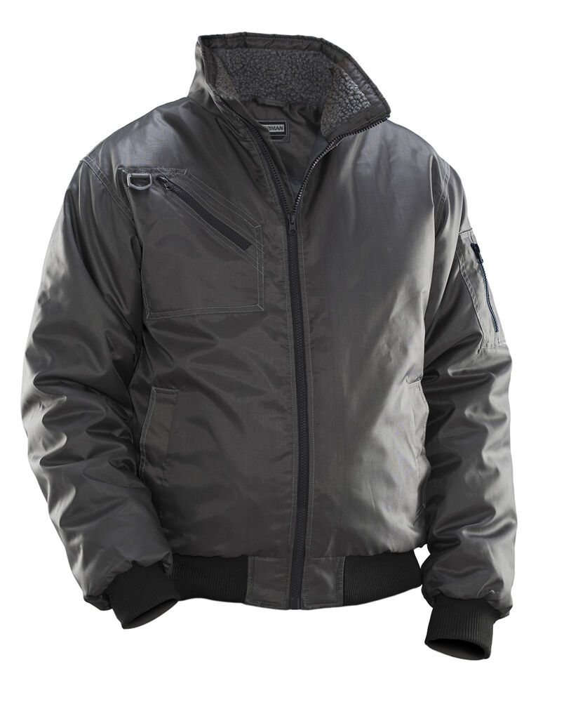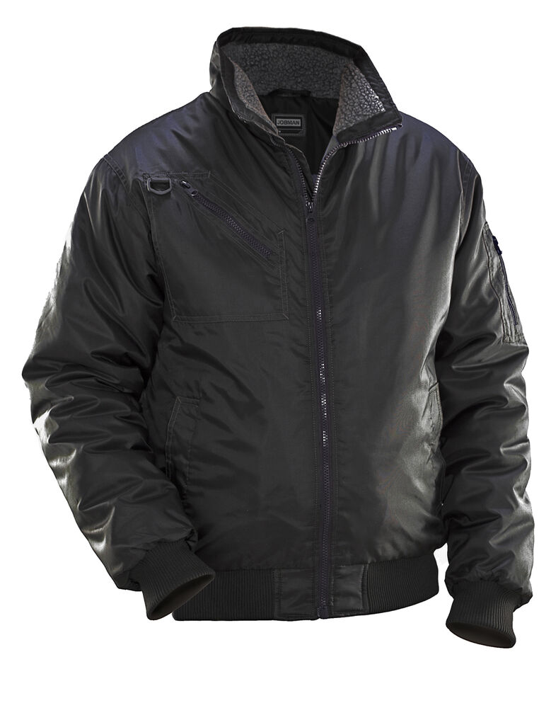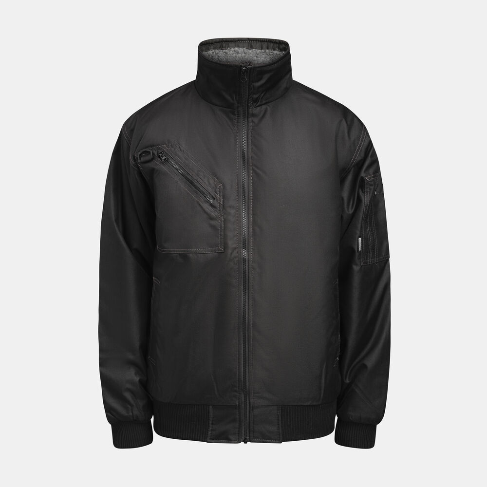 Vinterjakke i slitesterk polyester. Quiltfôr som gir smidighet og komfort. Ribbestrikk i midjen og på mansjetter. Pilotjakke i slitesterk vannavstøtende polyester med smidig quiltfôr. Mykt teddyfôr i kragen. Brystlommer og ermelomme med glidelås og frontlommer med knapper. Innerlomme med rom for mobiltelefon. D-ring for ID-kortholder. Finnes i størrelse opptil 5XL i svart.
