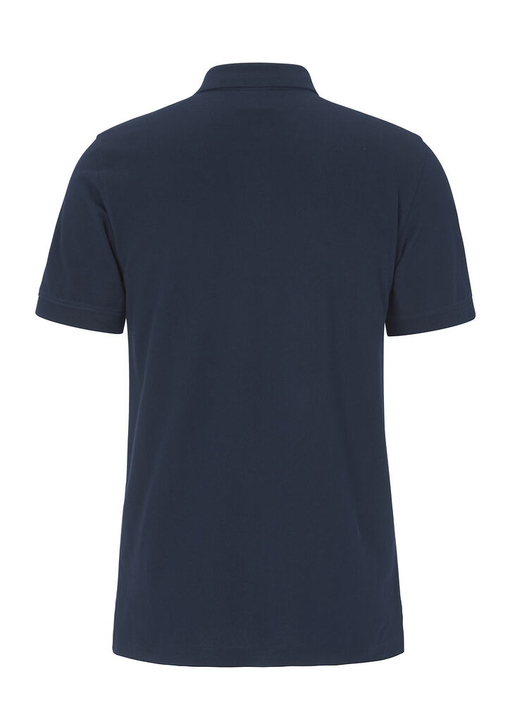 Kortermet pique i klassisk pique-strikk. Modellen har normal passform, strikket ribb på krage og ermer, to knapper i den forsterkede knappestolpen, splitt i siden og litt lenger rygg.