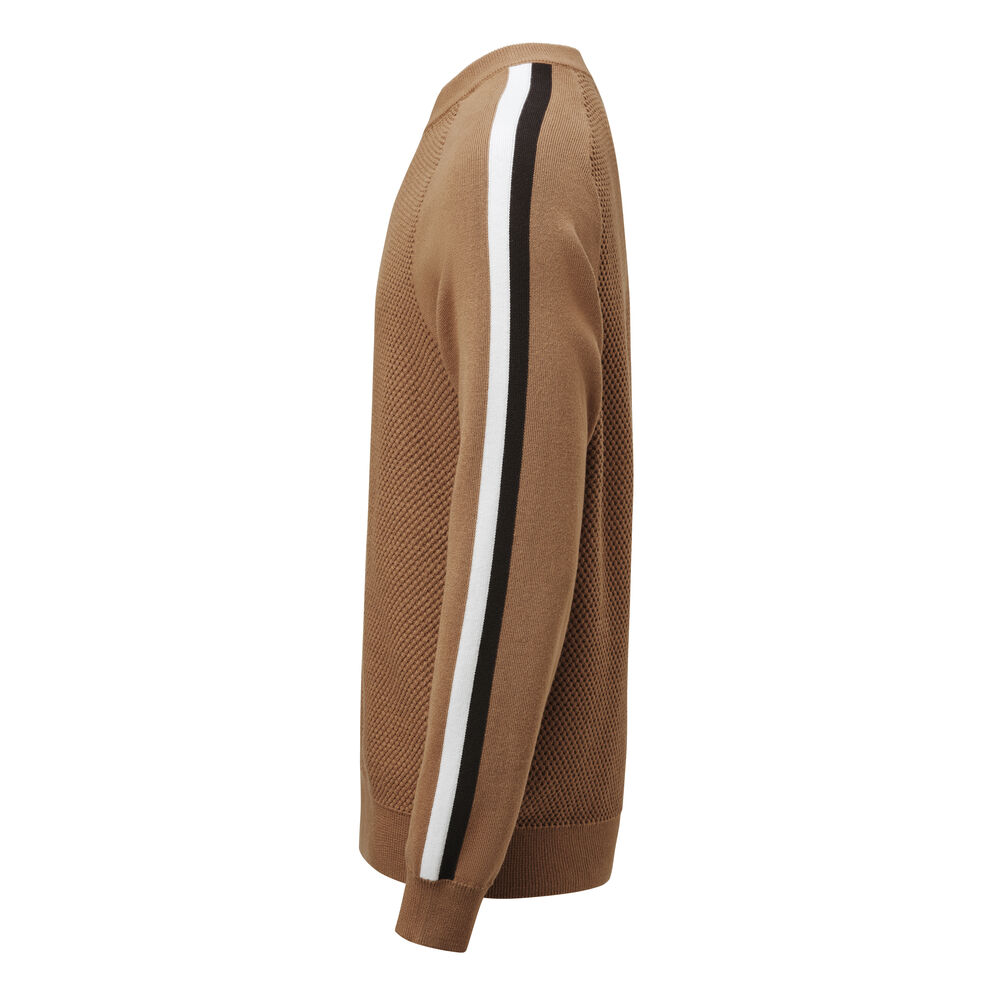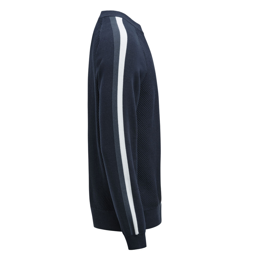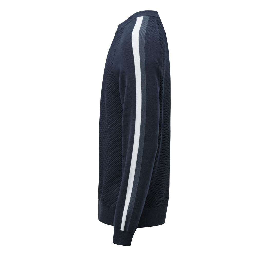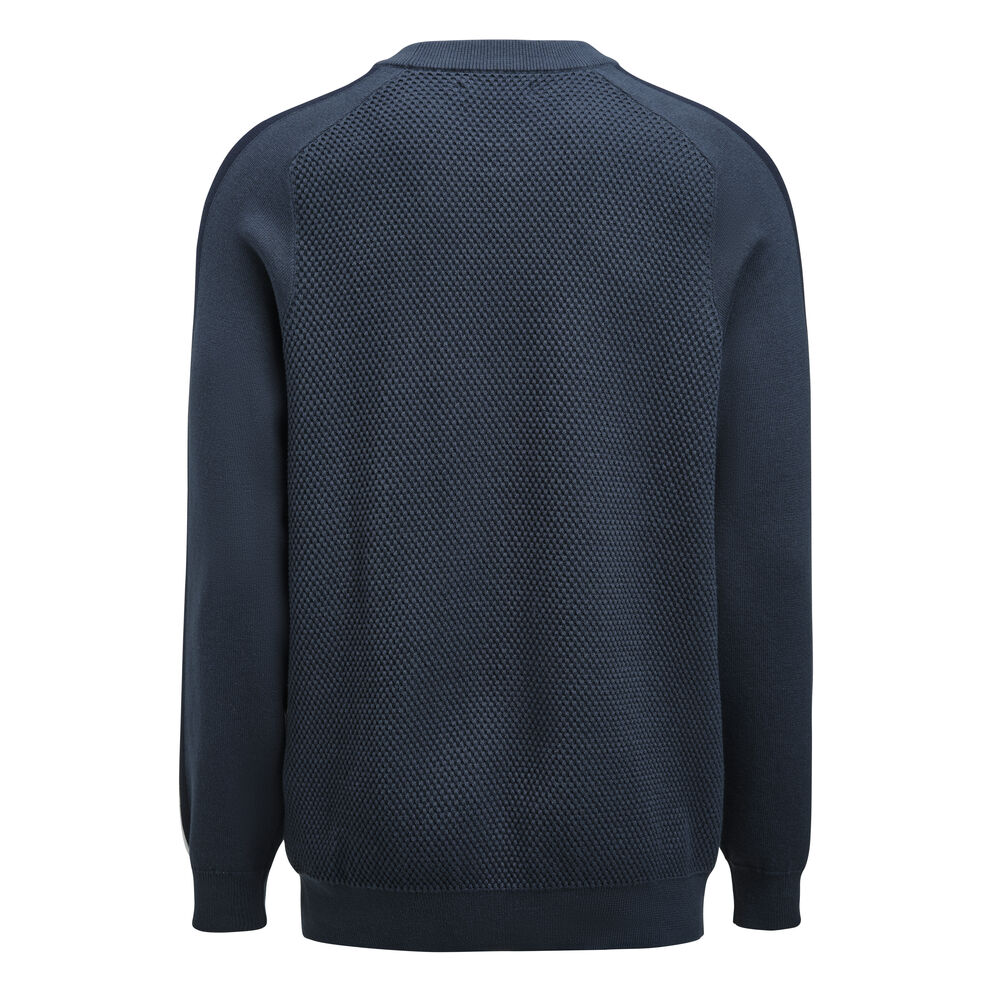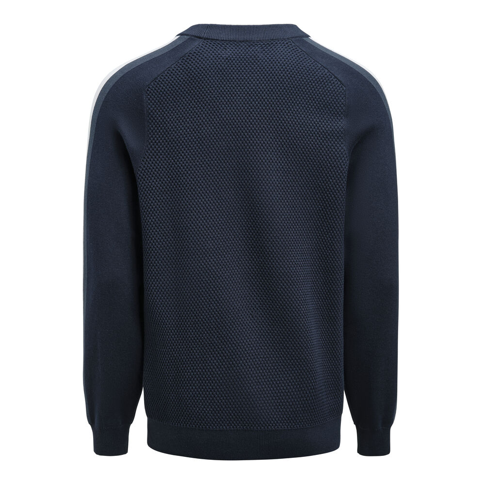 Scarsdale Sweater er en klassisk genser med en moderne vri. Genseren har strukturstrikk foran og bak – som gir tekstur og dybde – mens raglanermene har to kontrastfargede striper som gir et sporty, moderne uttrykk. Denne genseren er laget av 80 % sertifisert økologisk bomull og 20 % sertifisert resirkulert polyester.