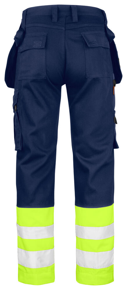 Lettstelt polyester/bomull som holder på fargen og formen. Romslige frontlommer. Baklommer med klaff og borrelås. Benlomme med ekstra rom og klaff med borrelås. Tommestokklomme. C42-64 kan forlenges med 5 cm ved at kanten brettes ned.