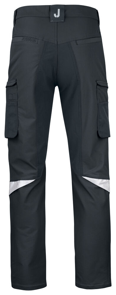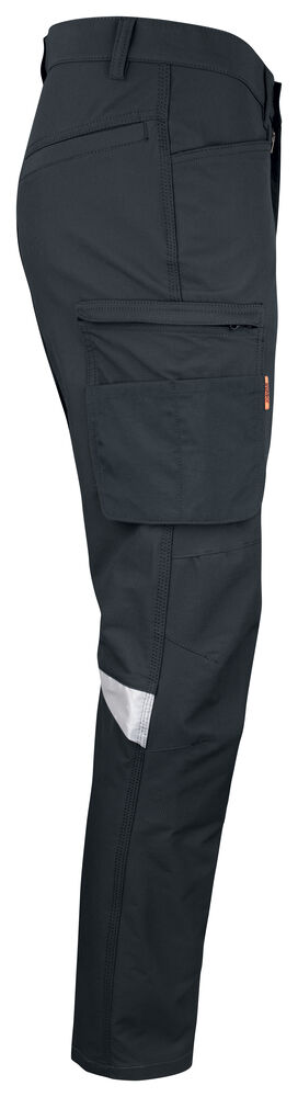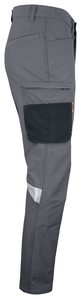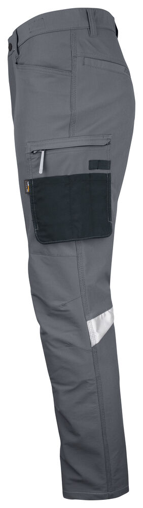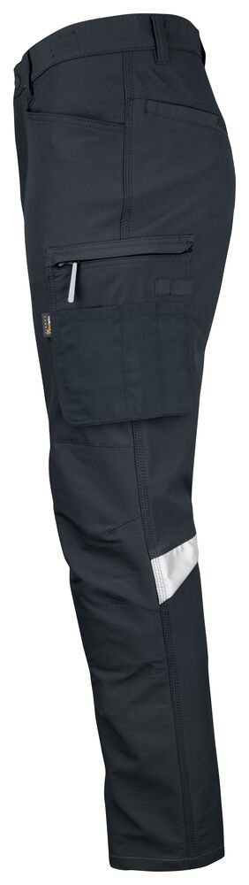 Smidig 4-veis stretch i slitesterkt ripstop-materiale. Forsterket stretch Cordura® i skrittet. Silikonbåndet i bukselinningen holder buksen på plass. Ekstra beltehemper på de største størrelsene. Romslige frontlommer og pene stolpelommer bak. Romslige benlommer med skjult glidelås og mobiltelefonlomme. Forbøyde knær med knebeskyttelseslommer med åpning fra innsiden i to posisjoner. Mesh i knefolden for ventilasjon. Forsterkninger i Cordura® og polyamid.