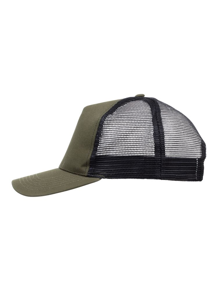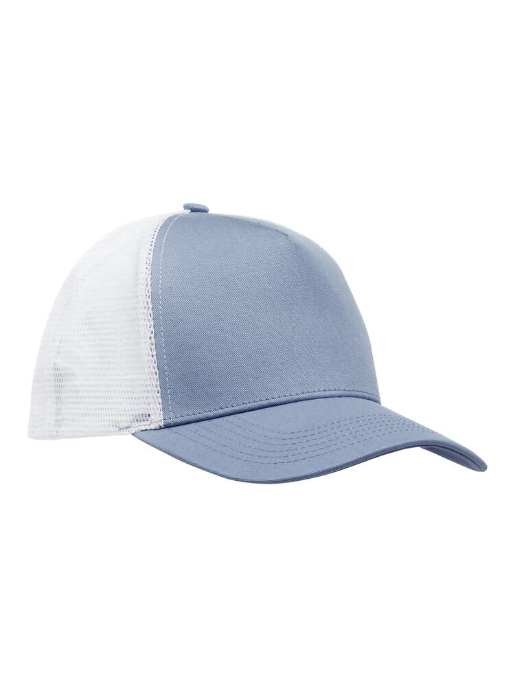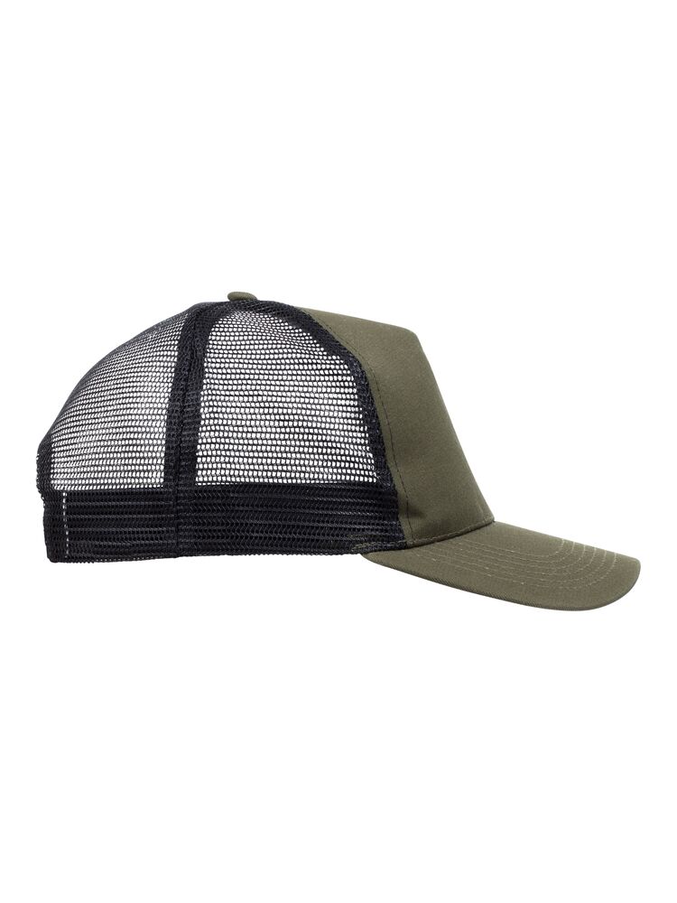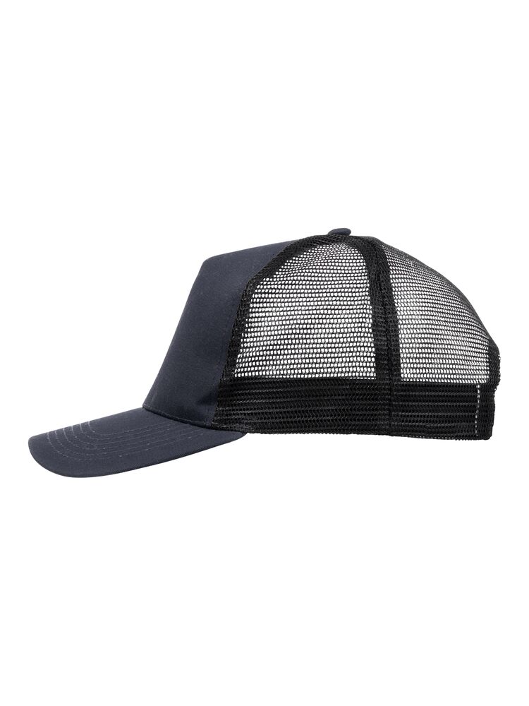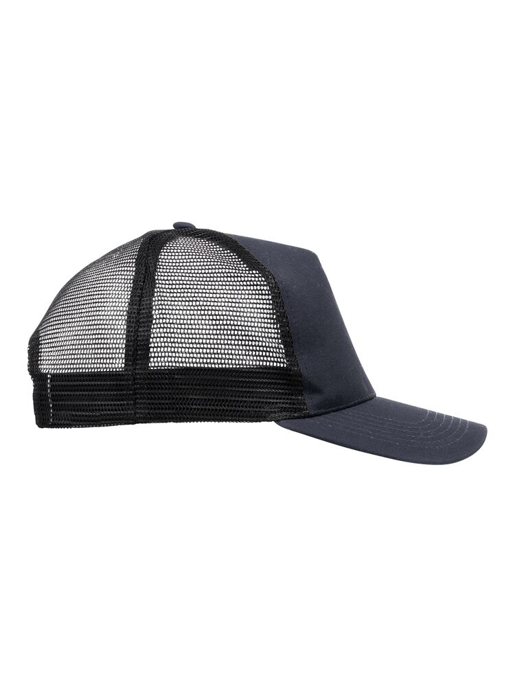 En 5-panels caps i trucker-stil, laget av børstet bomullstwill med polyester mesh på baksiden. Snapback-lukking. Lyse farger kommer med hvit mesh, mørke farger med svart mesh.