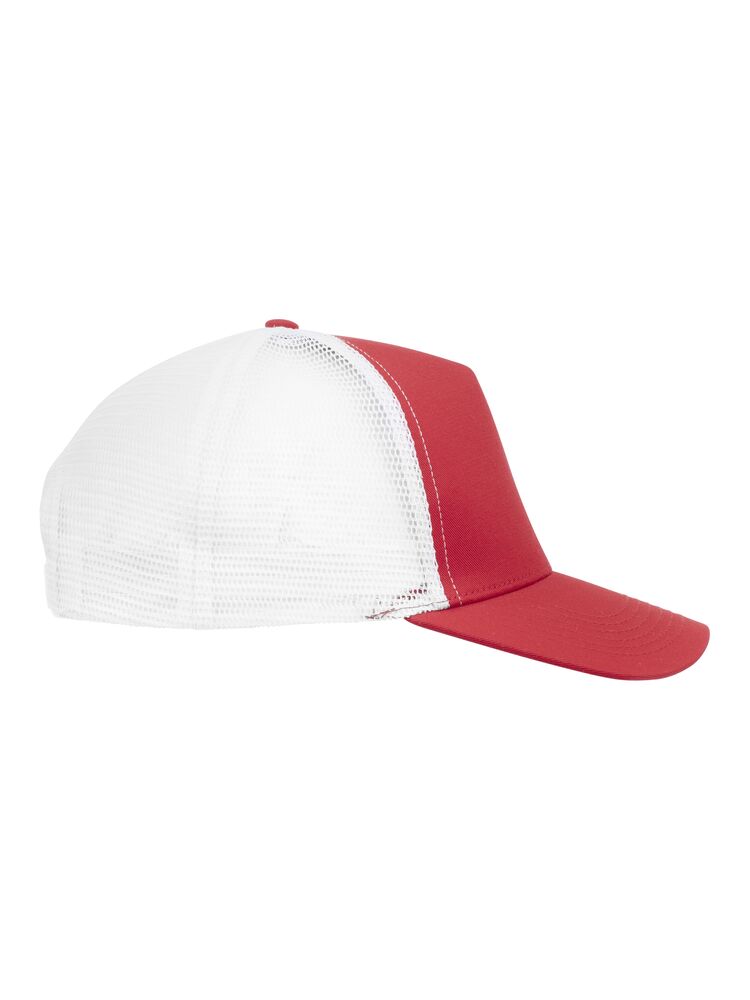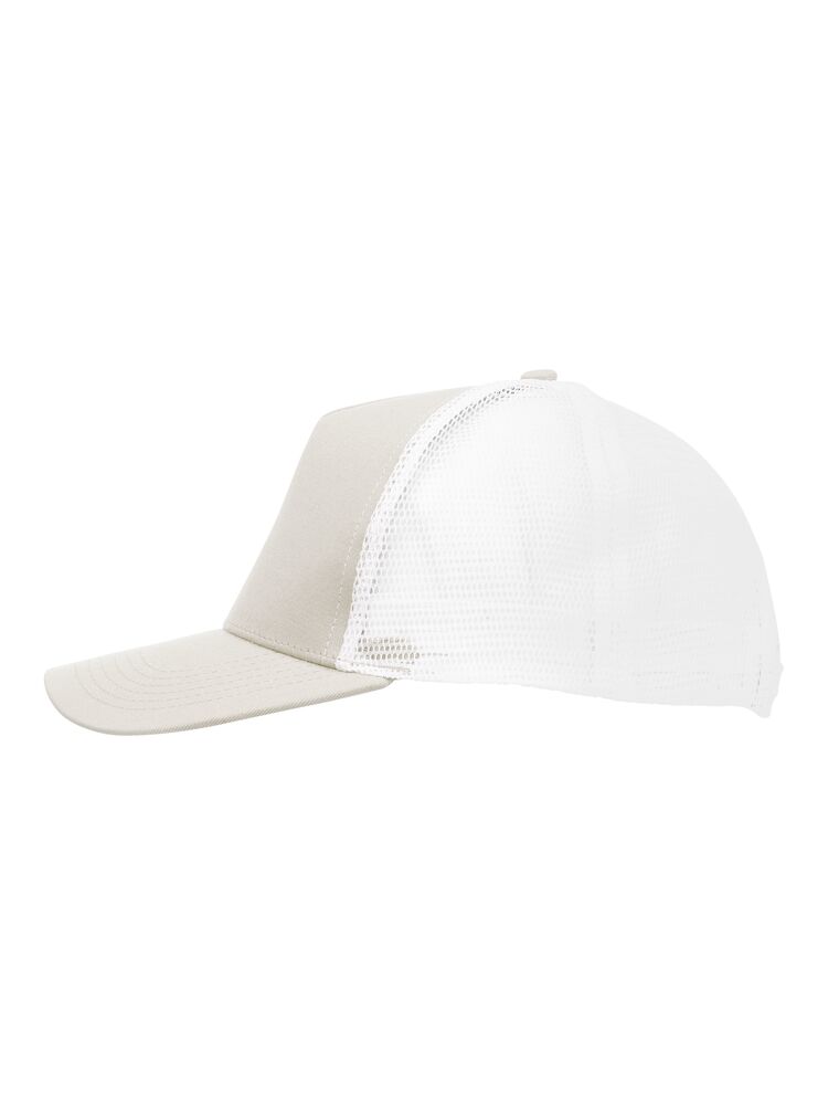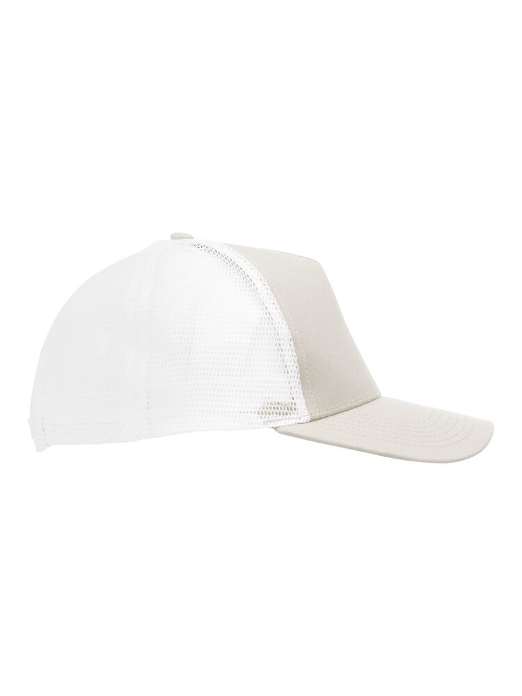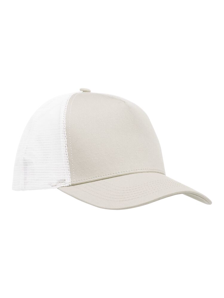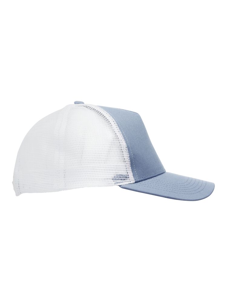 En 5-panels caps i trucker-stil, laget av børstet bomullstwill med polyester mesh på baksiden. Snapback-lukking. Lyse farger kommer med hvit mesh, mørke farger med svart mesh.