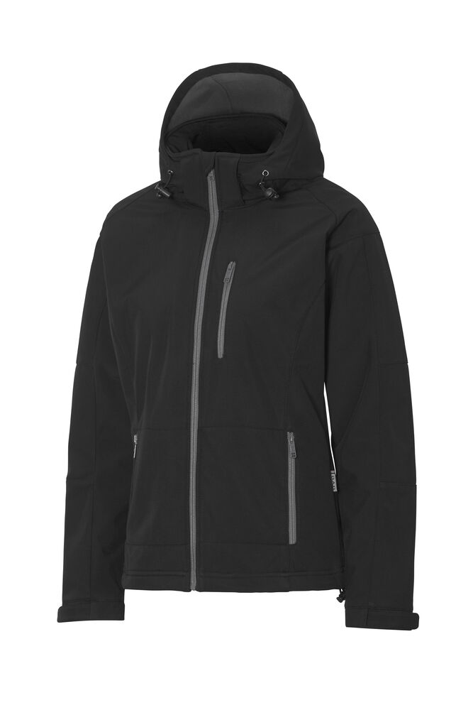 Softshelljakke i sort med grå mikrofleece på innsiden. Vind- og vannavvisende (WP3000/MVP3000). Avtagbar hette og justerbare ermeavslutninger. Elastisk snøring i hette og nederkant. Bryst- og frontlomme, samt innerlomme. YKK-glidelåser. Bionic Finish Eco.