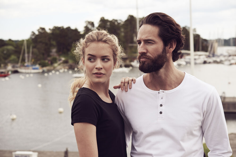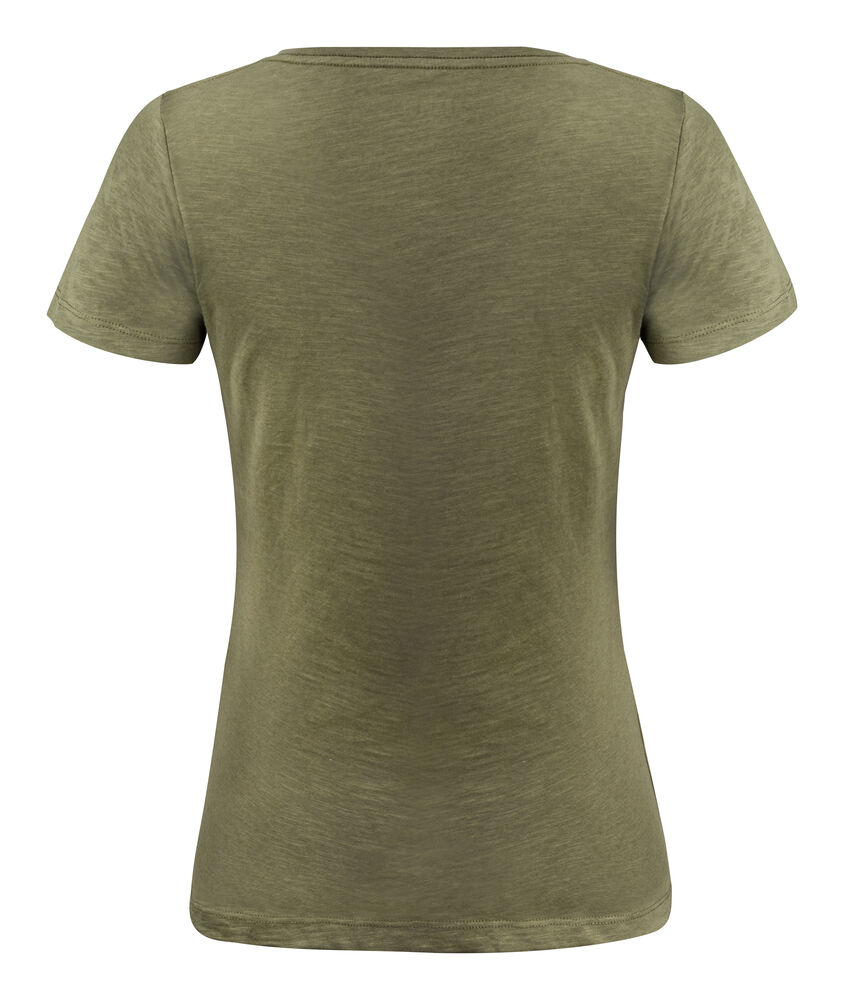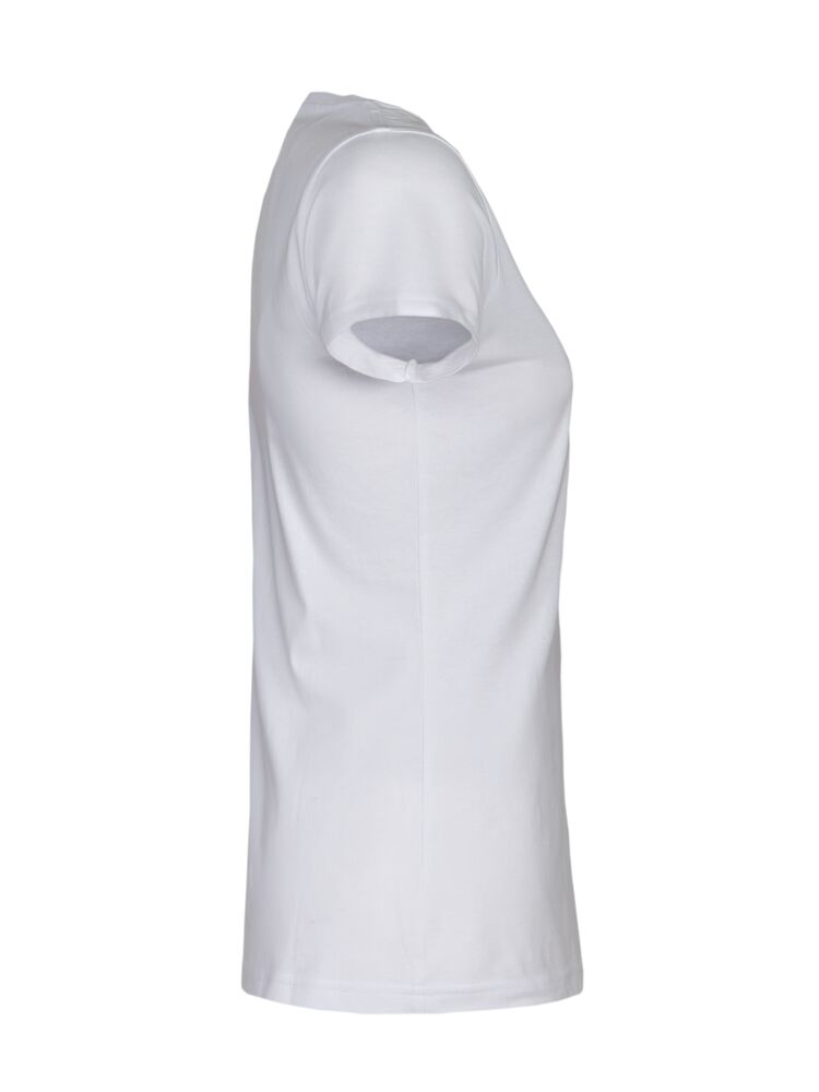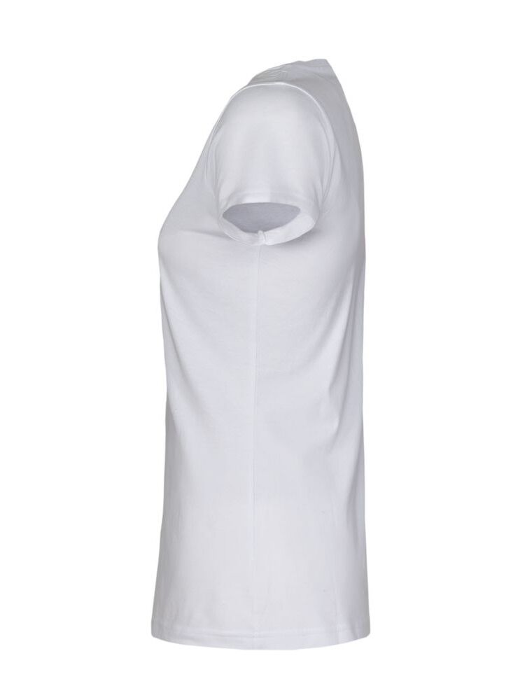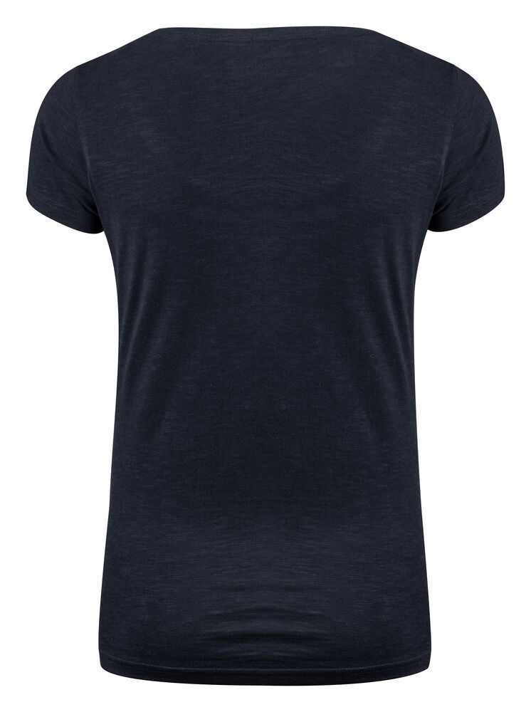 Moderne rundhalset T-shirt til dame. Slub tricot materialet av bomull gir et melert utseende.