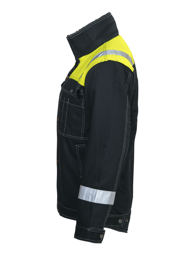 Teddyfôr i kroppen gir den beste varmen, og quiltfôr i ermene øker smidigheten. Høyre brystlomme med klaff og mobilmobiltelefonlomme. Venstre brystlomme med ekstralomme. Hanskelommer under brystlommene. Romslige frontlommer. Innvendig mobiltelefonlomme. Doble innerlommer. Forlenget rygg og regulerbar i midjen og på mansejett. Glidelås med vindklaff i kragen. Varselmateriale på skuldre og reflekser på skuldre og ermene.
